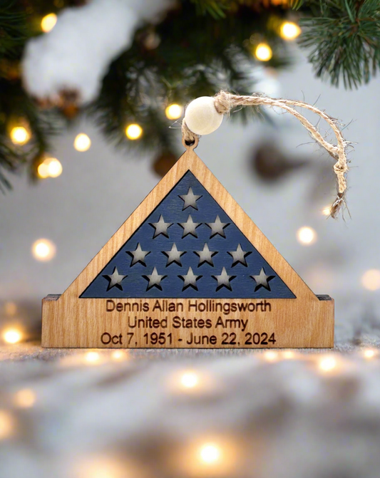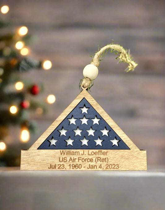 Personalized Military Folded Flag Veteran Memorial Ornament