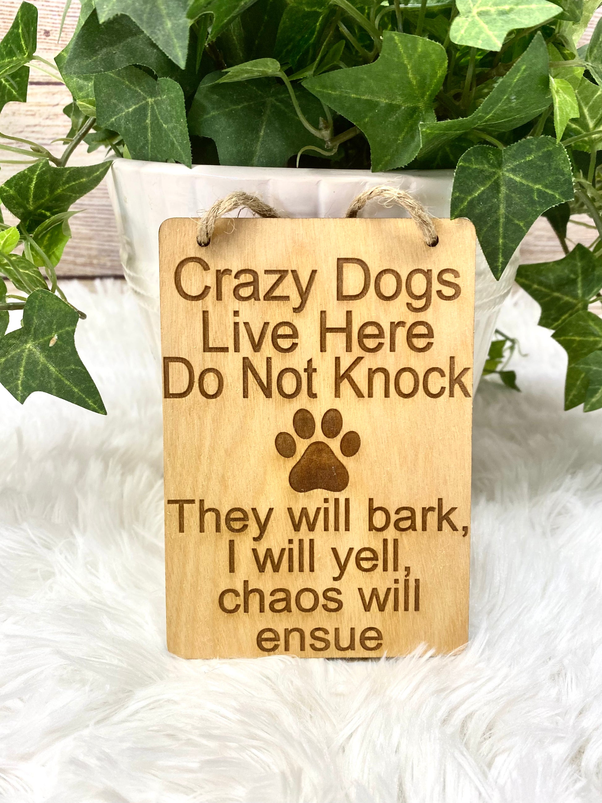 Crazy Dogs Live Here. Do Not Knock. They Will Bark, I will Yell, Chaos will Ensue