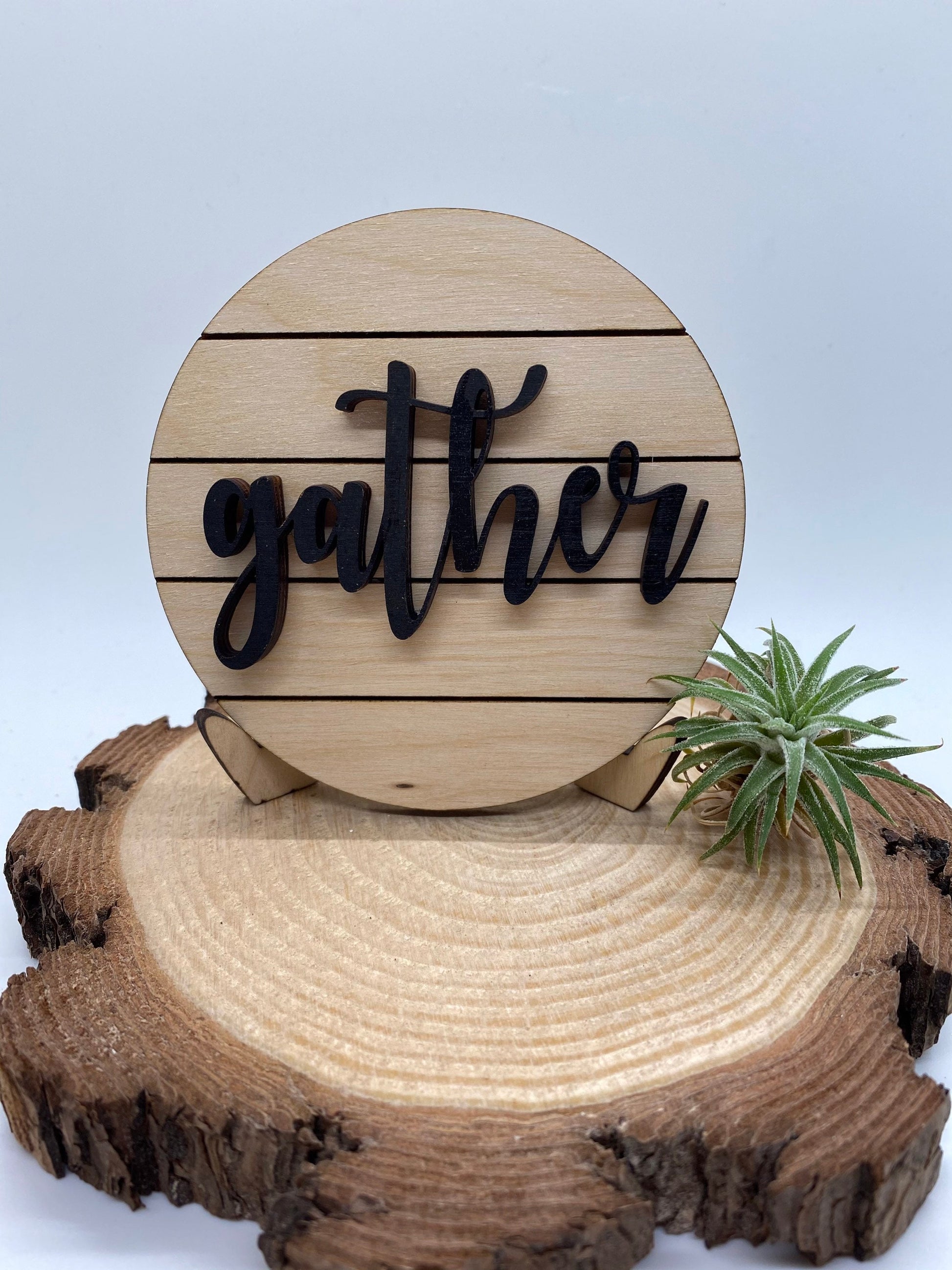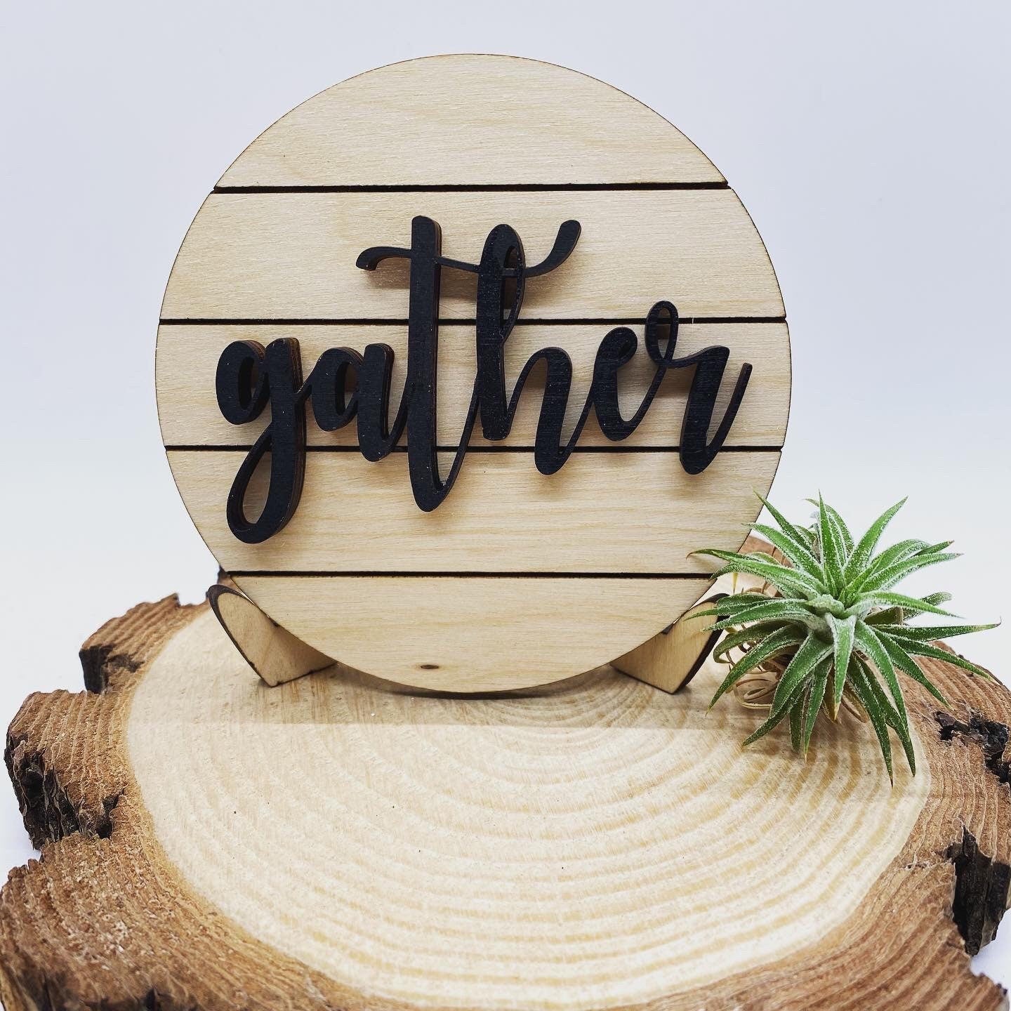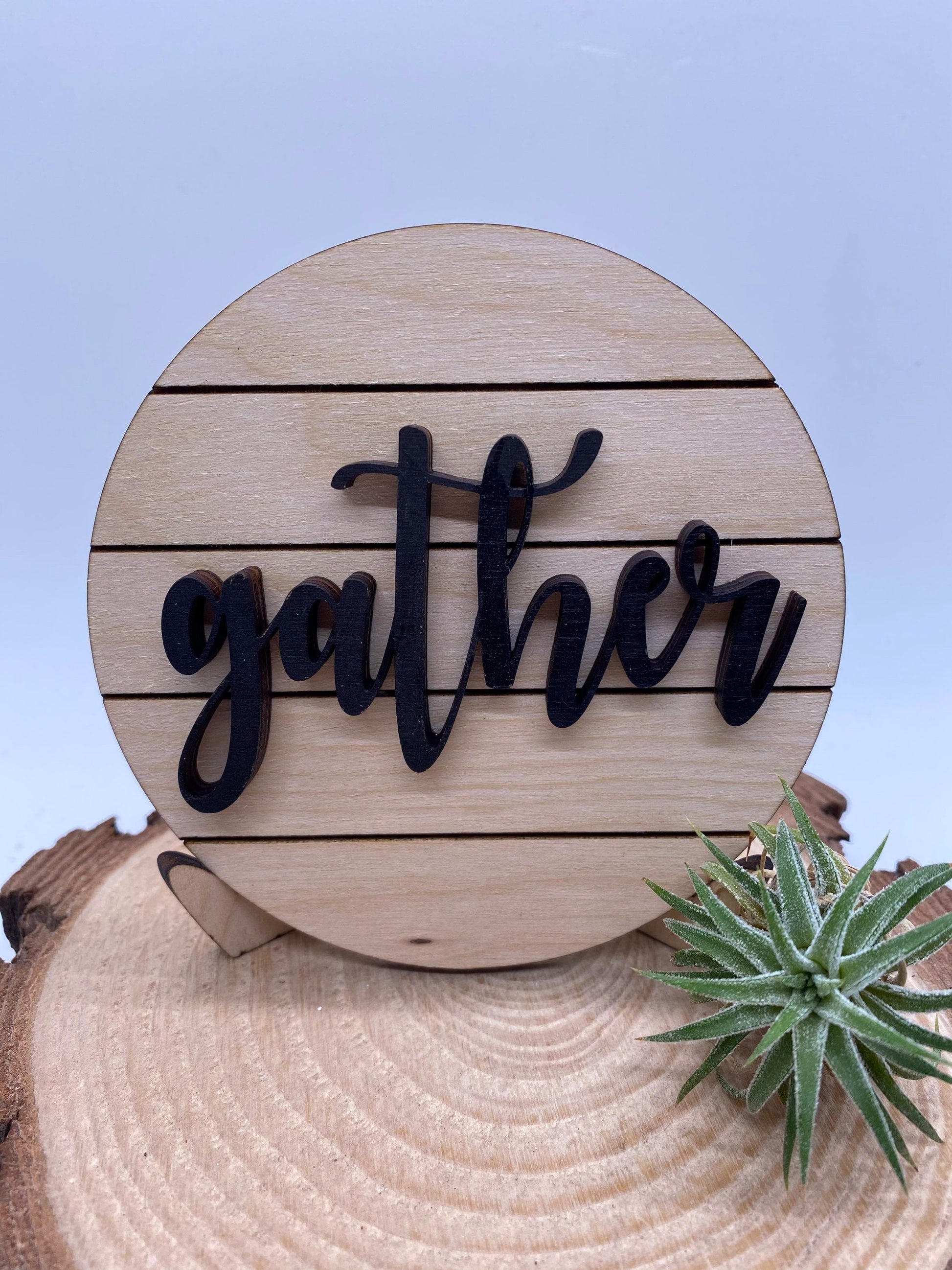 Gather Tiered Tray Sign, Shiplap Inspired Tray Sign, Tiered Tray Decor, 4” Round Tiered Tray Sign, Wood Tiered Tray Sign, Tiered Tray
