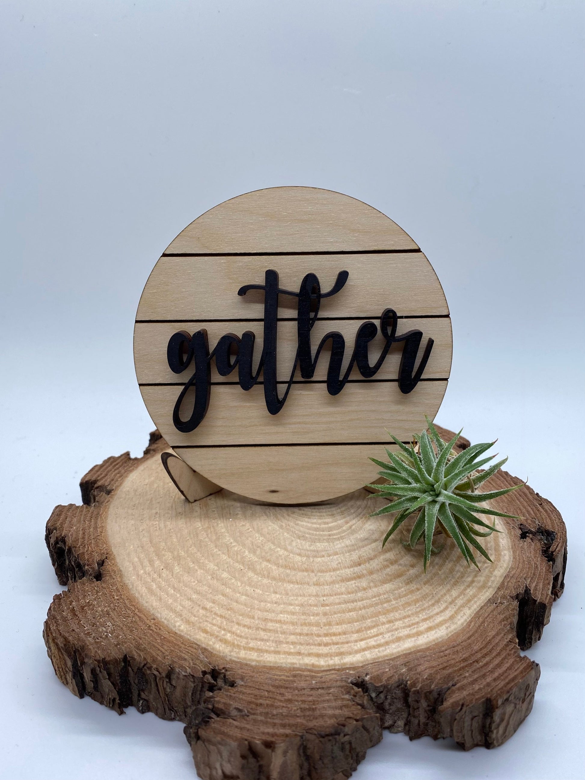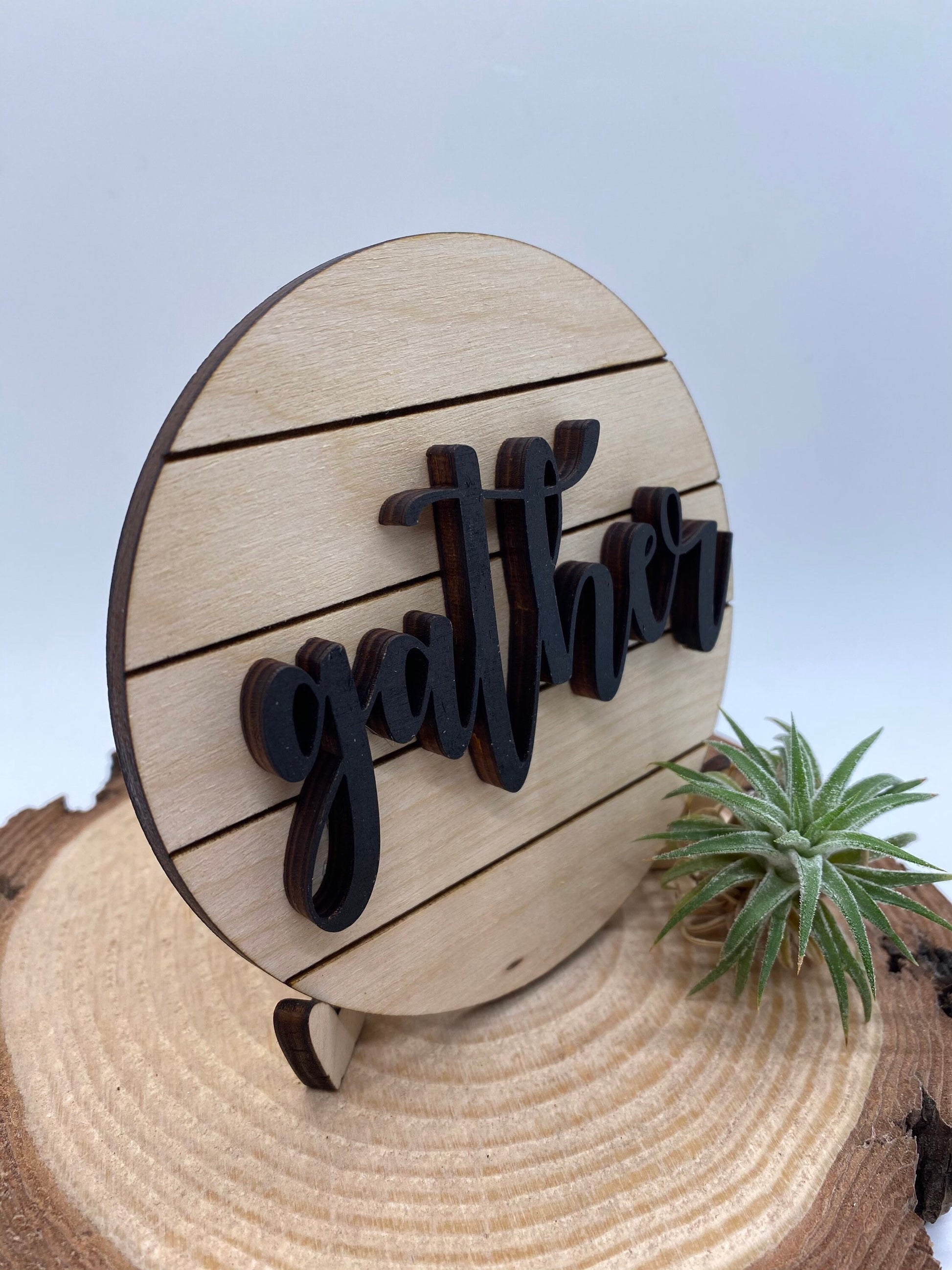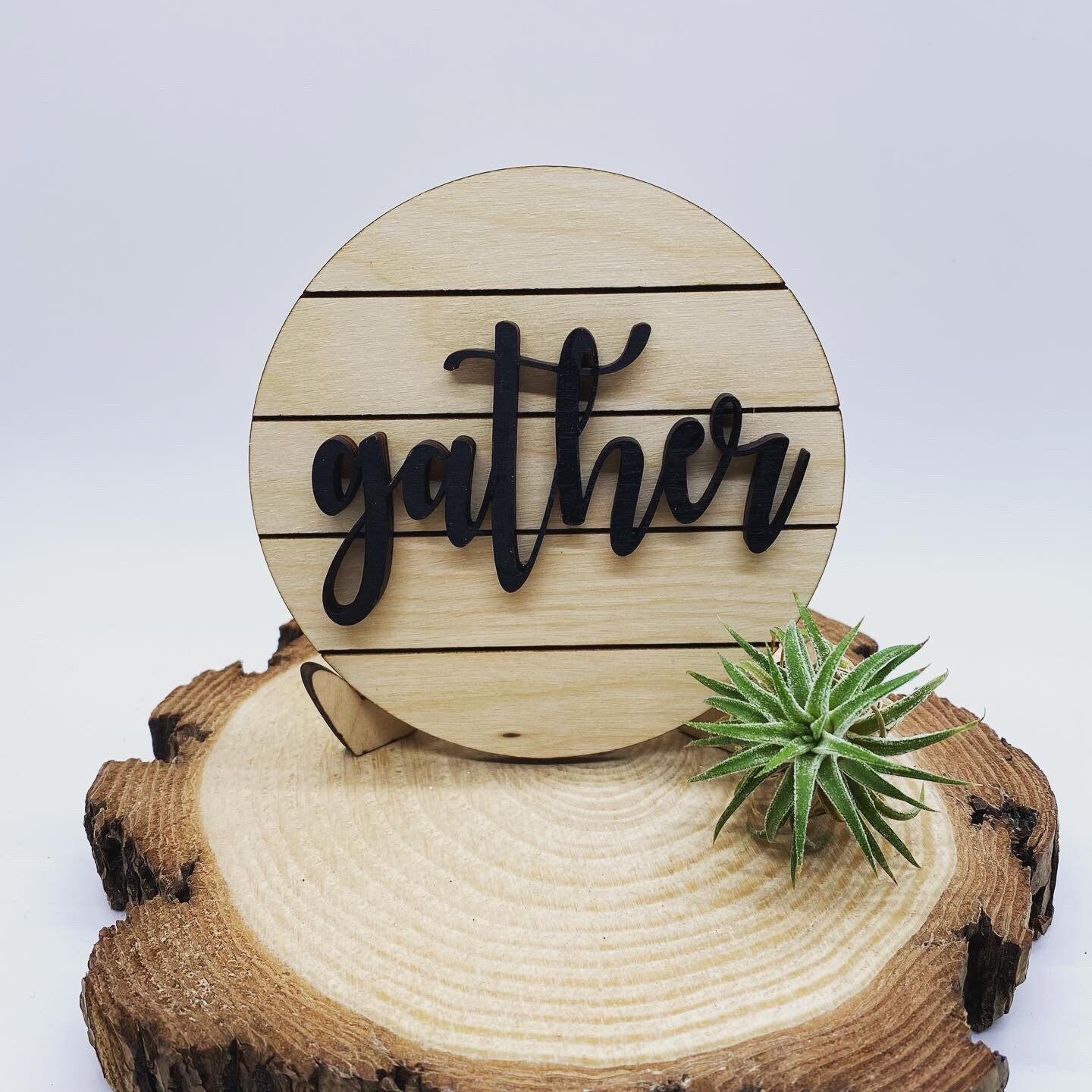 Gather Tiered Tray Sign, Shiplap Inspired Tray Sign, Tiered Tray Decor, 4” Round Tiered Tray Sign, Wood Tiered Tray Sign, Tiered Tray