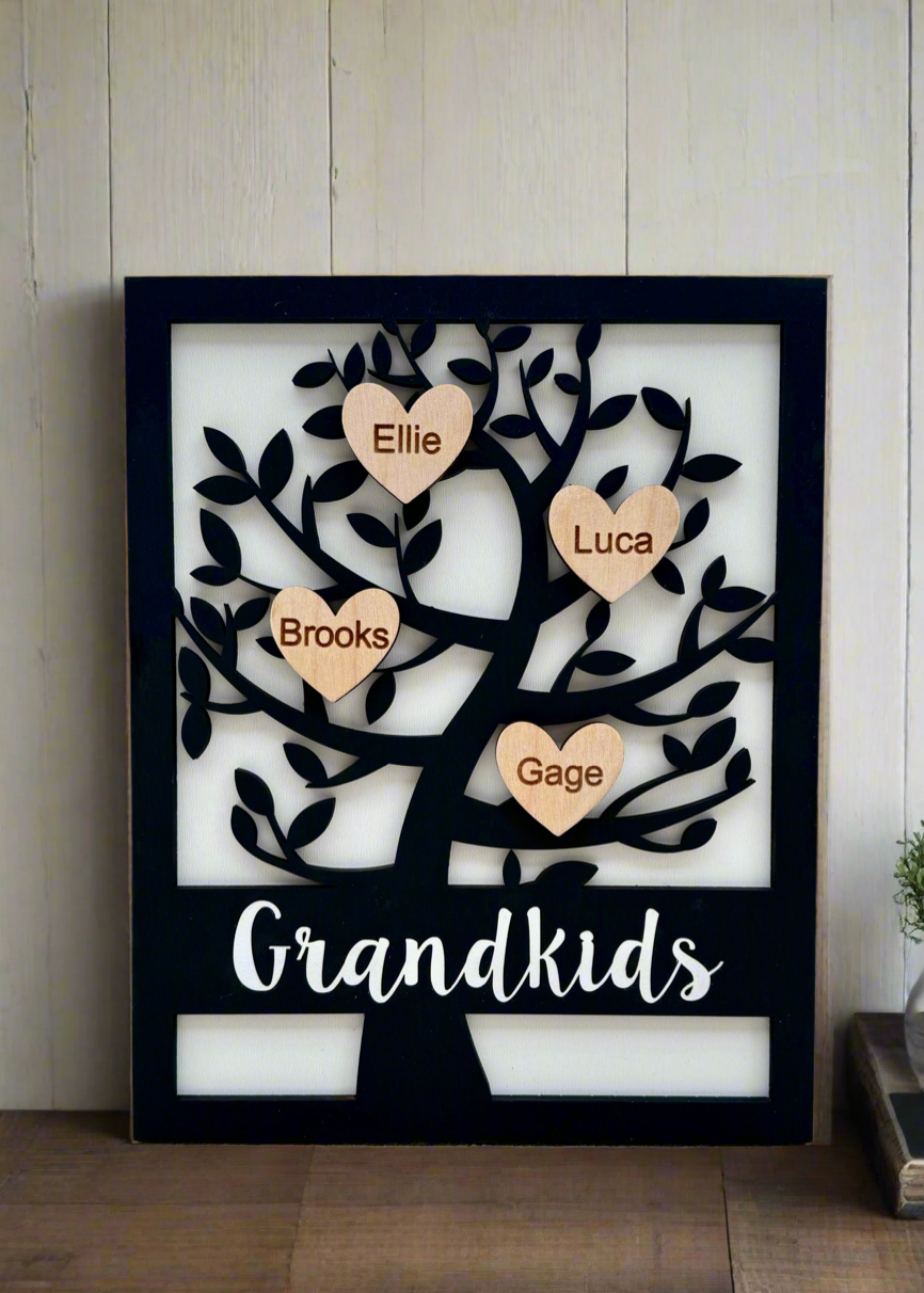 Our handmade Grandkids Family Tree Sign make the perfect gift for grandparents.