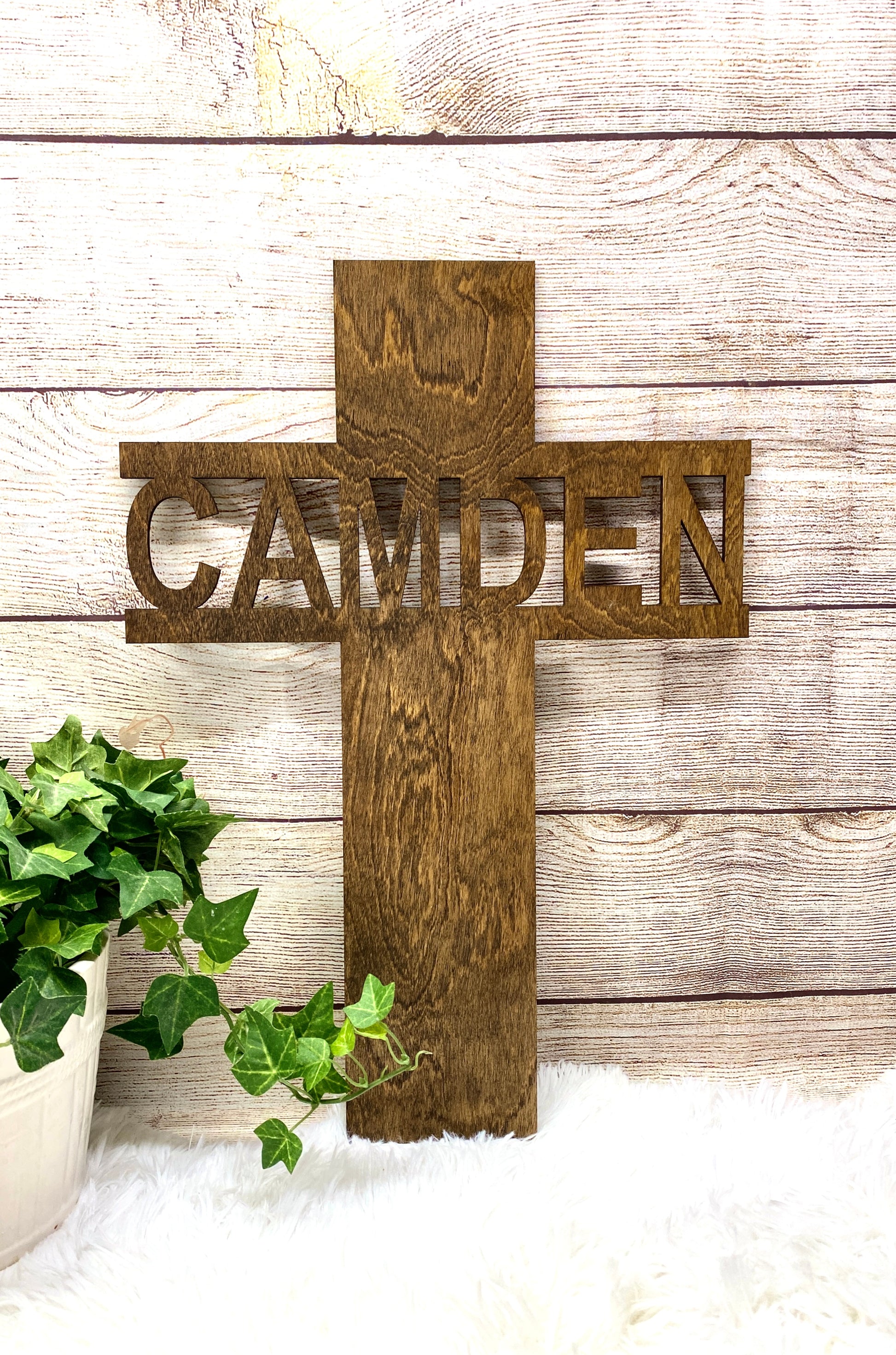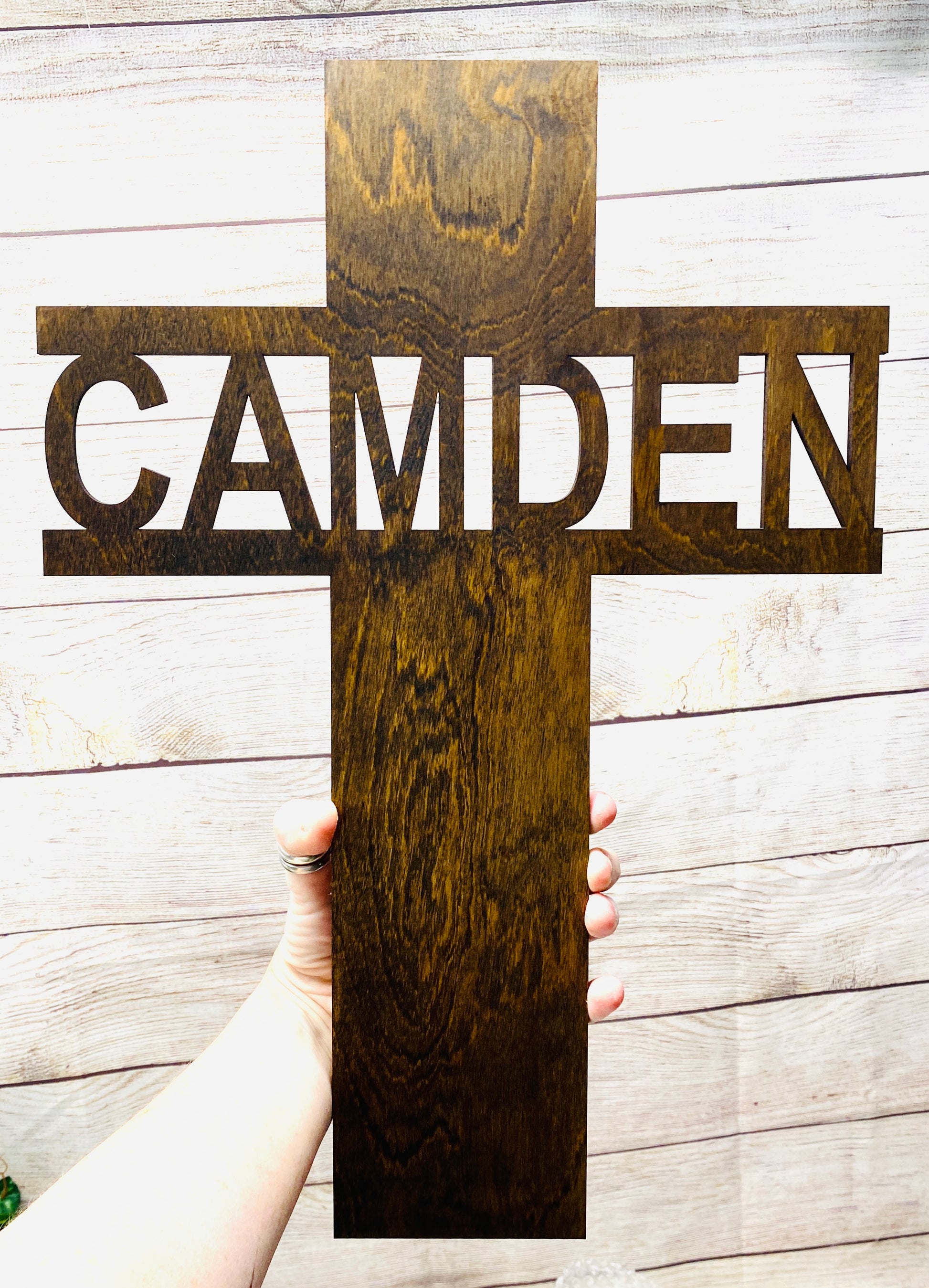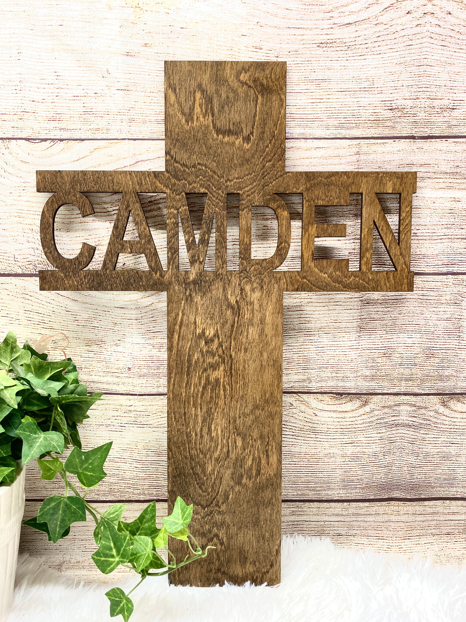 *Add name you wish to be cutout on the cross in the personalization box before checkout*
