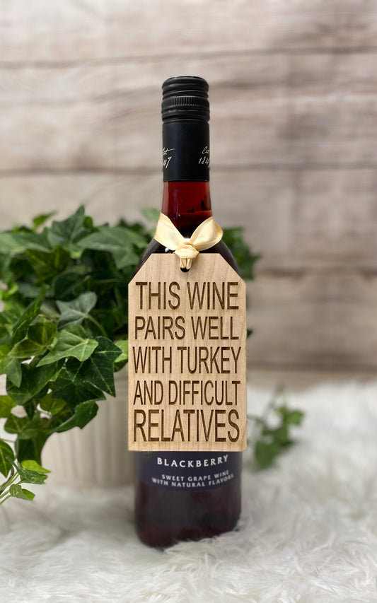 Wine Bottle Tag - Pairs Well With Turkey and Difficult Relatives OR Pairs Well With Ham and Difficult Relatives