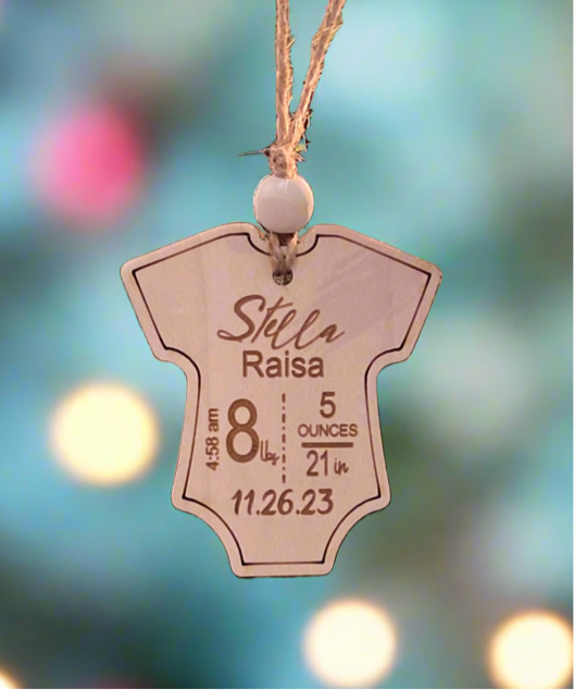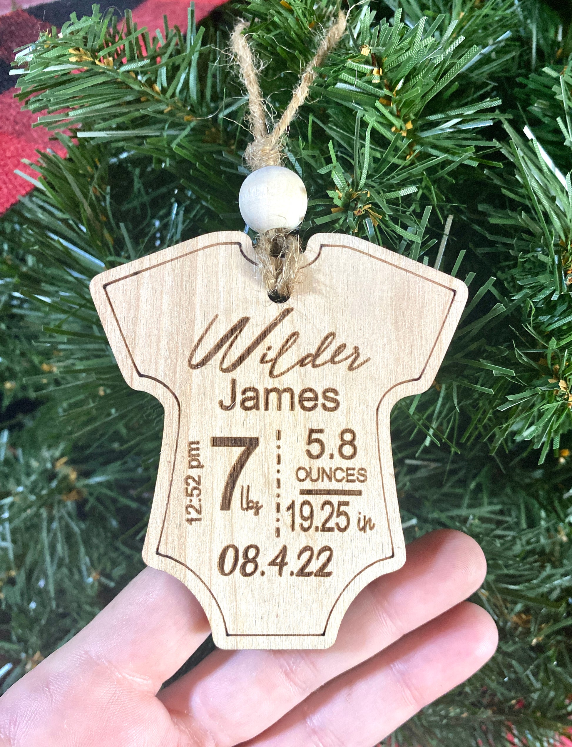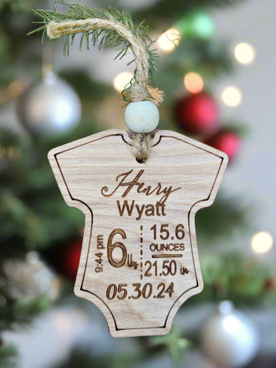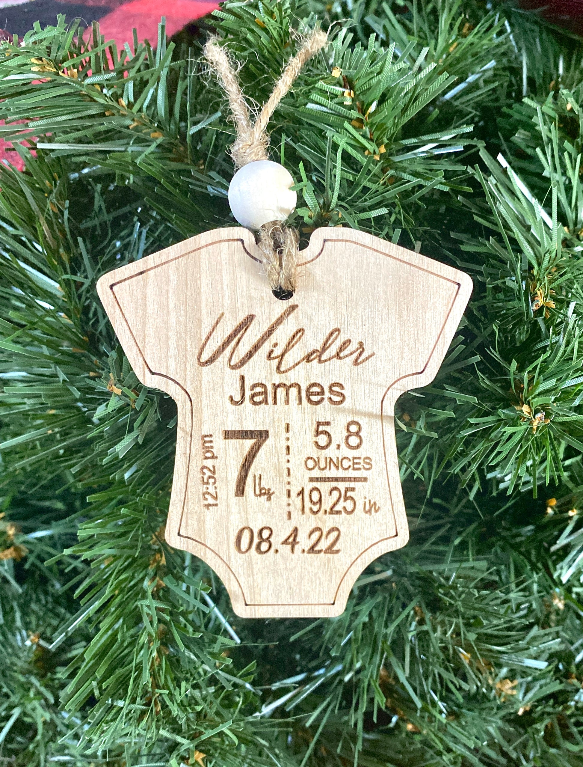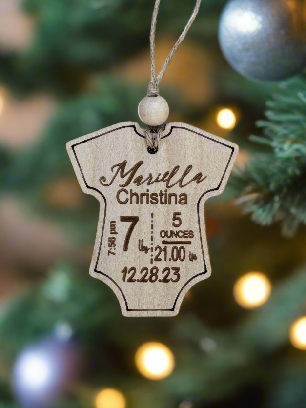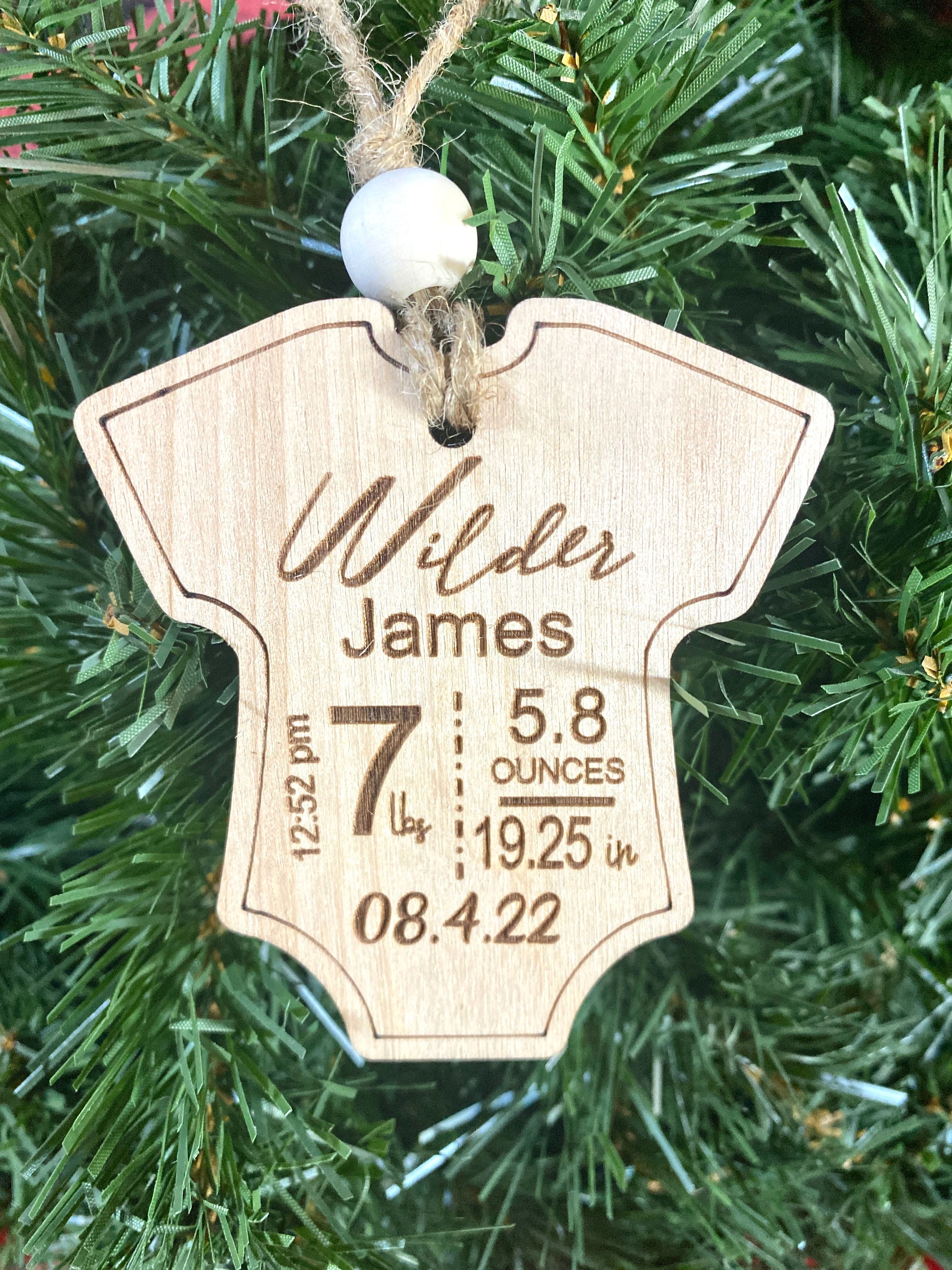 This Baby's First Christmas Ornament is the perfect way to commemorate your little one's first holiday season. Crafted with wood and laser engraved, this ornament displays your baby's stats for a sentimental reminder of their first Christmas. Create a timeless keepsake to celebrate the wonder and joy of the holiday season!