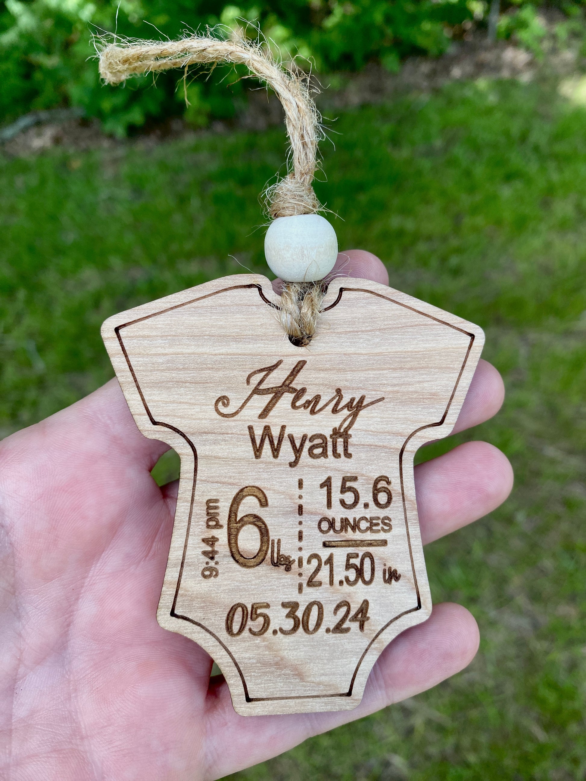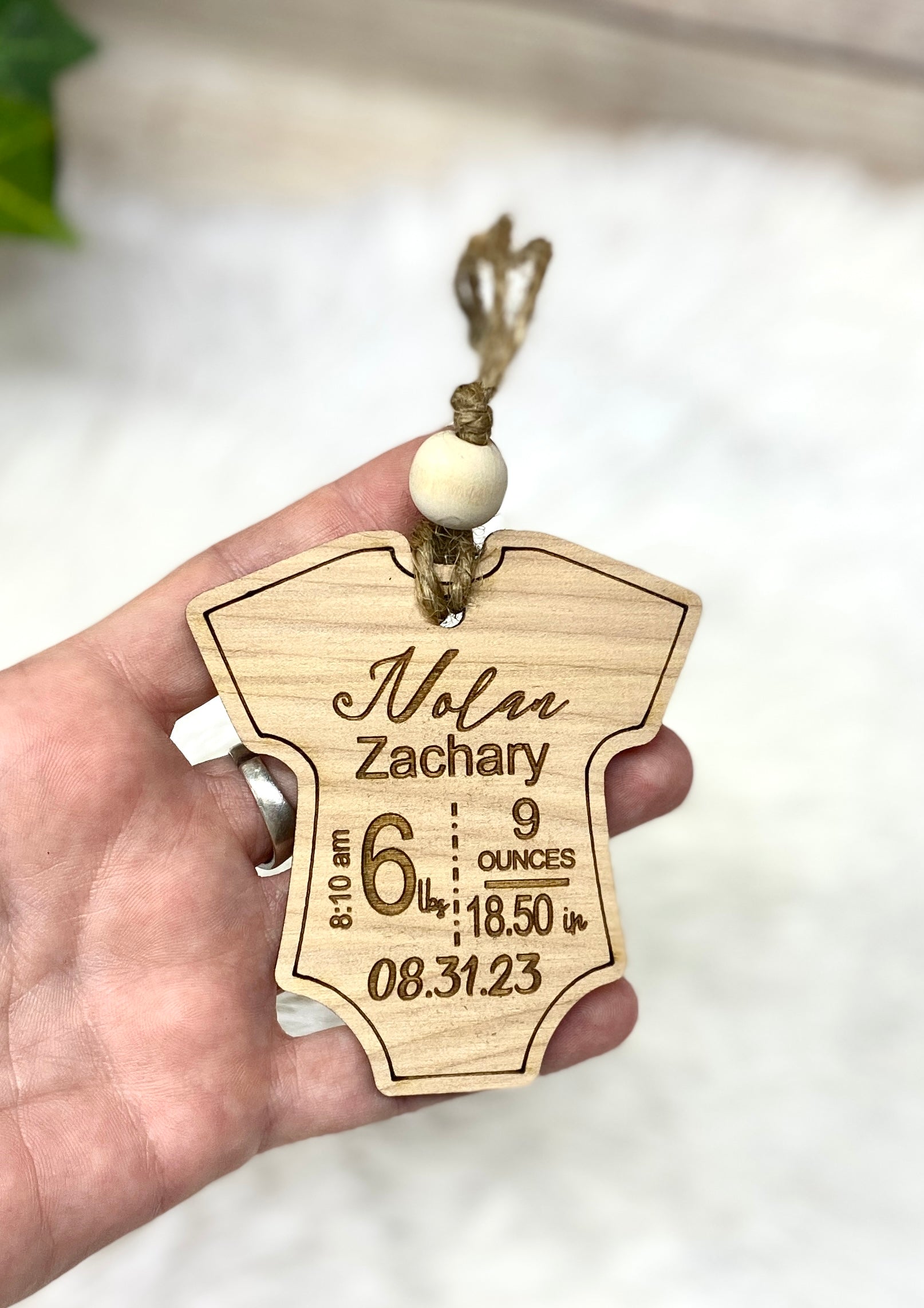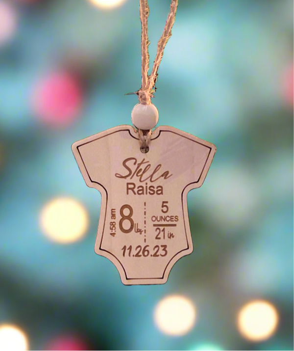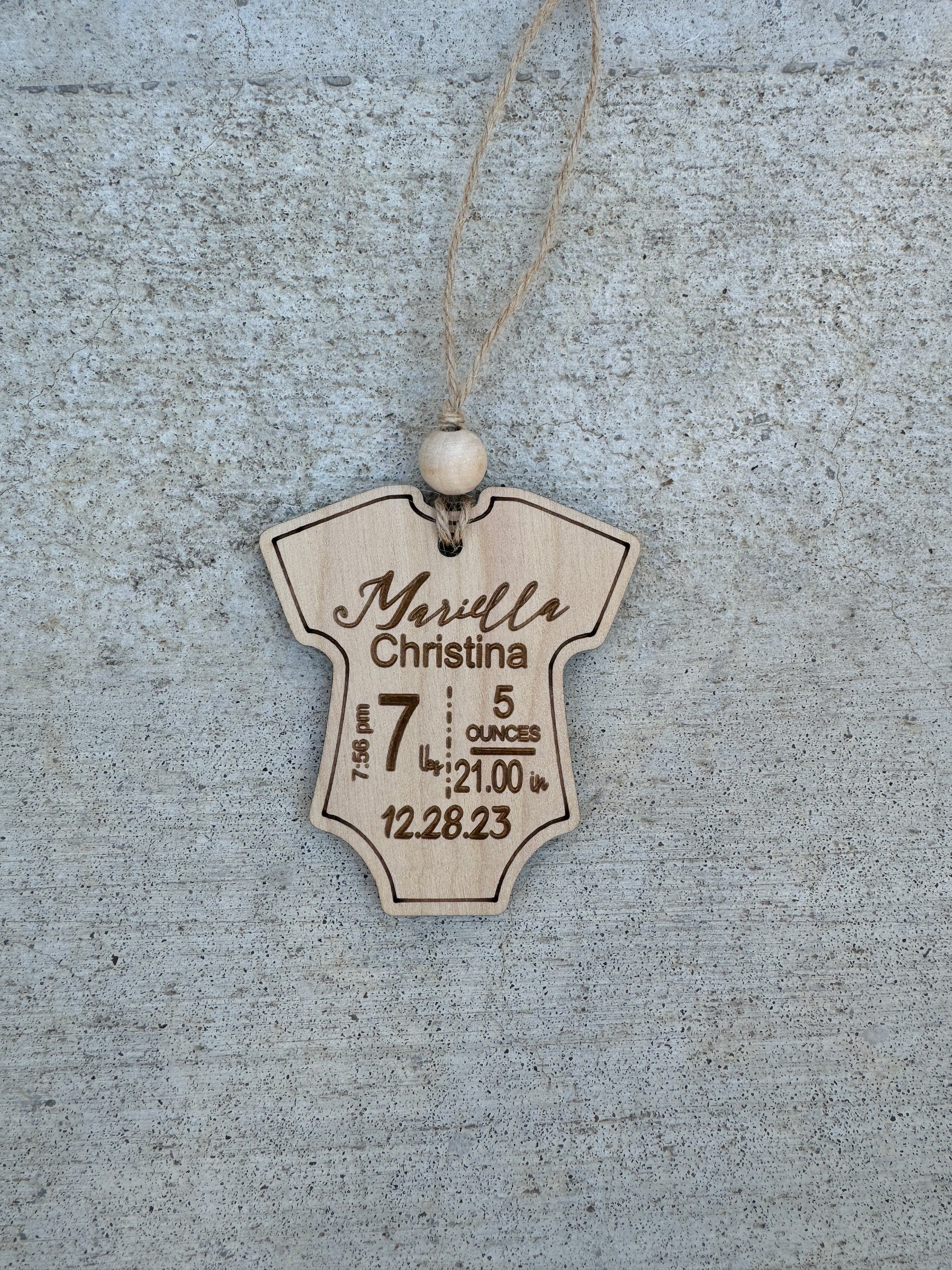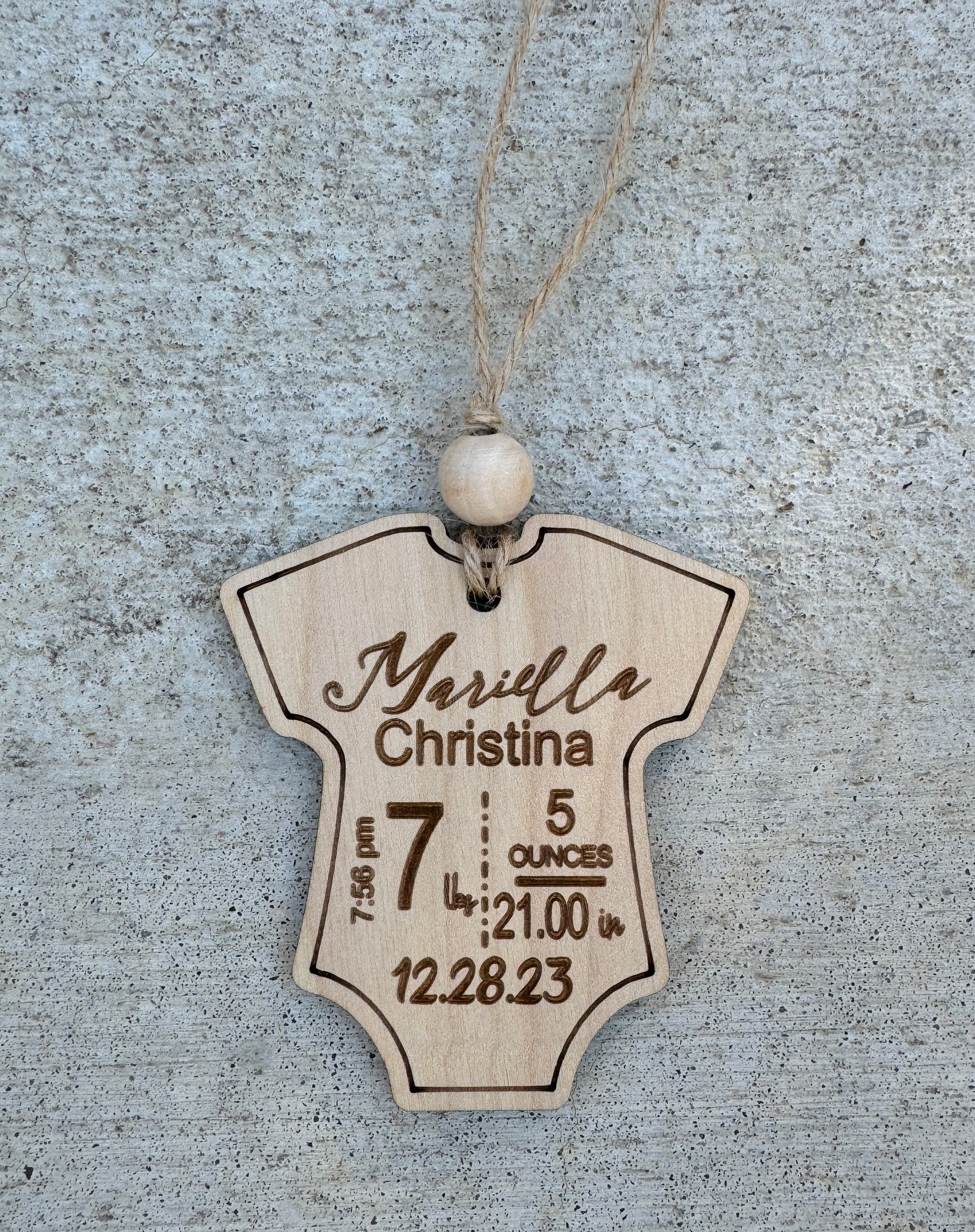 This Baby's First Christmas Ornament is the perfect way to commemorate your little one's first holiday season. Crafted with wood and laser engraved, this ornament displays your baby's stats for a sentimental reminder of their first Christmas. Create a timeless keepsake to celebrate the wonder and joy of the holiday season!