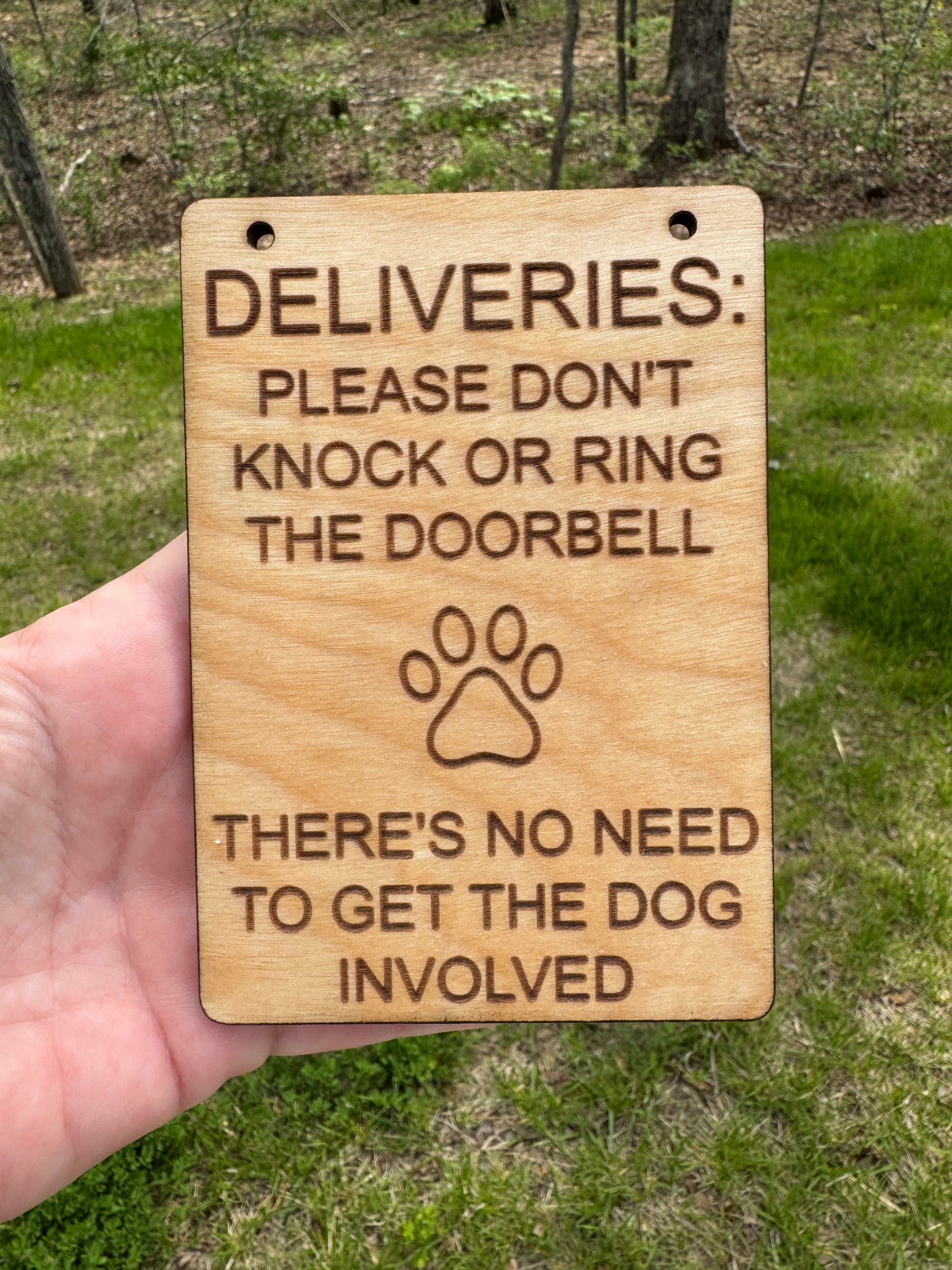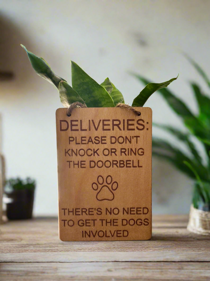 - Our delivery sign is designed to hang next to your doorbell or over your Ring Doorbell to announce to delivery drivers not to ring the doorbell for deliveries.