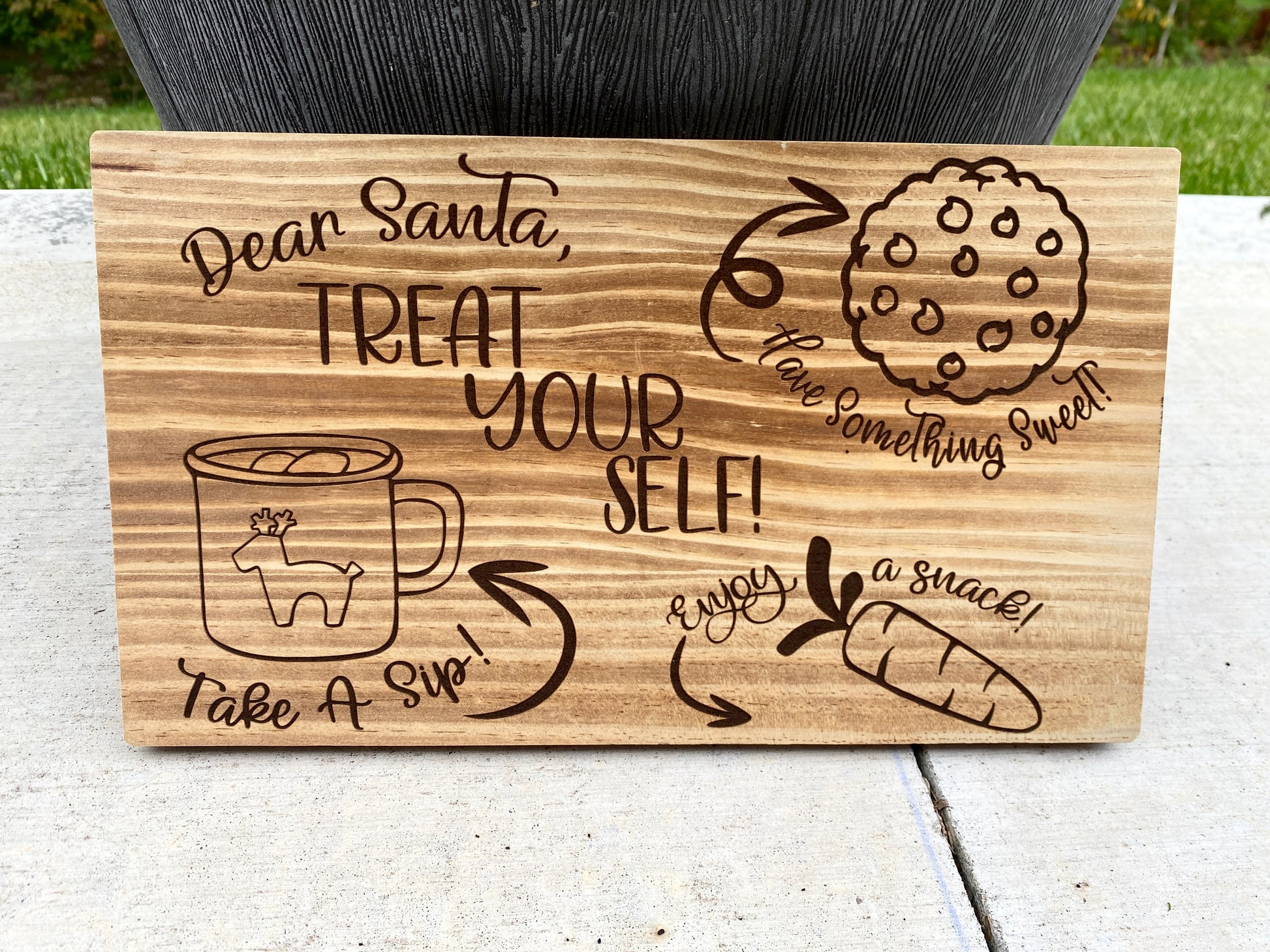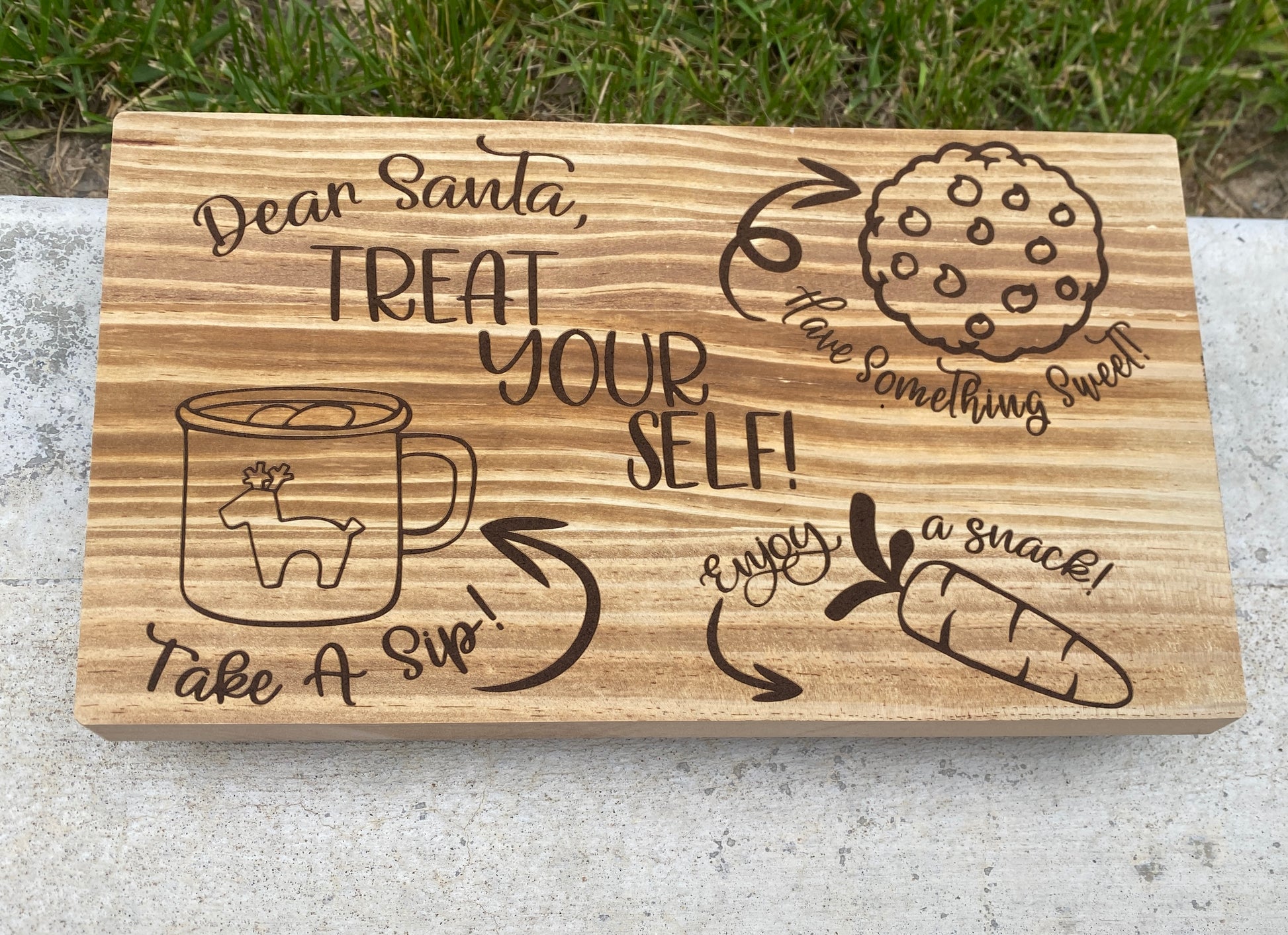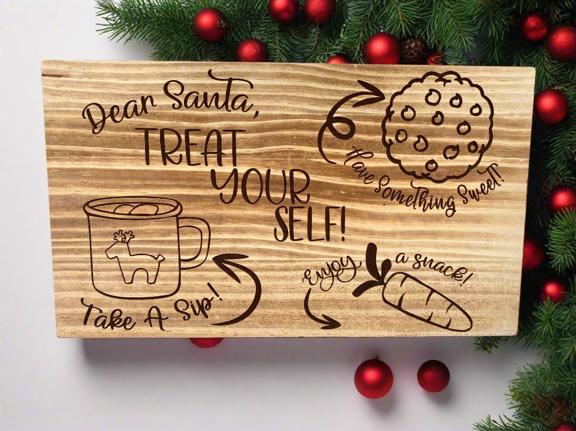 Make Santa's visit extra special with our Wood Engraved Raised Santa Christmas Tray, a charming addition to your holiday traditions. Expertly crafted from high-quality wood, this festive tray features intricate engraved designs that capture the magic of Christmas. The raised design, supported by sturdy metal feet, elevates the tray, adding an elegant touch to your holiday décor.