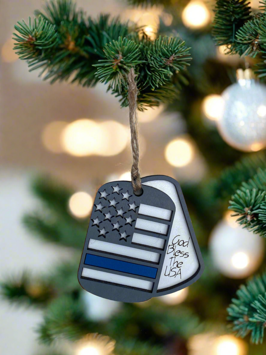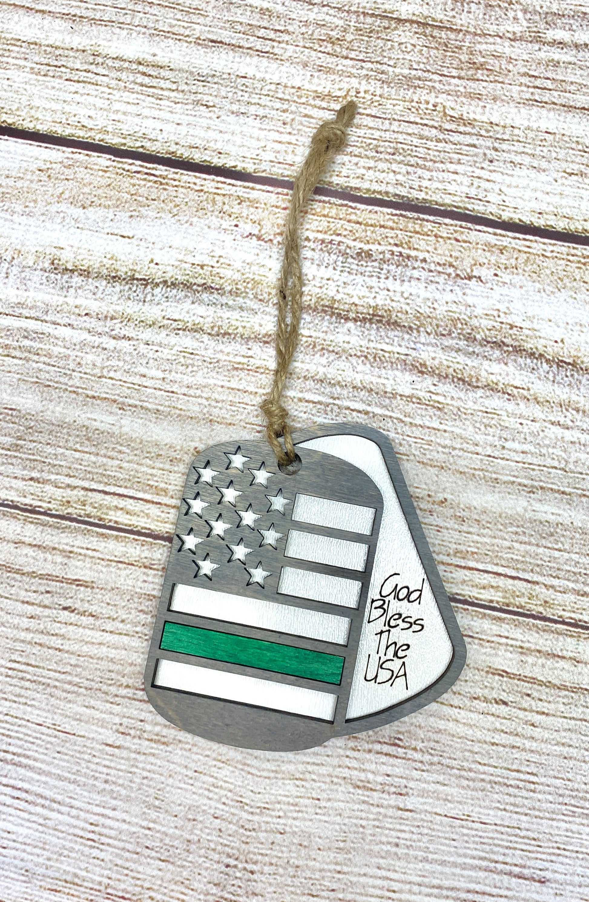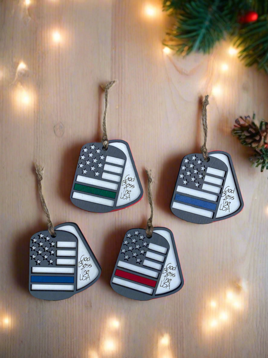 This Wood Service Member Dog Tag Christmas Ornament is more than just a decoration; it's a tribute to the men and women who selflessly serve and protect our communities and nation. Whether you're a service member, a family member, or simply someone who appreciates their sacrifice, this ornament is a meaningful addition to your holiday tradition.