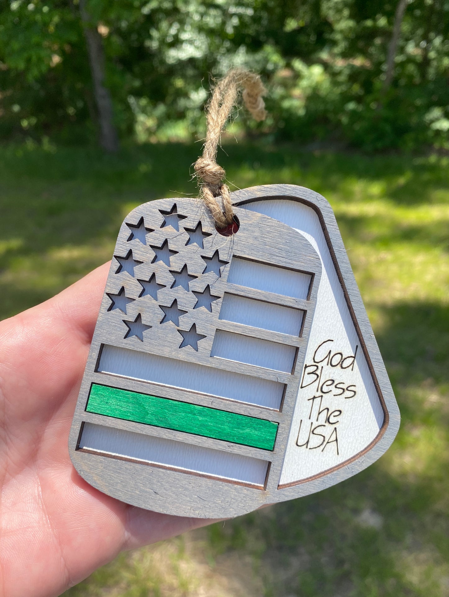 • Thin Line Colors: Representing our dedicated service members, the ornament is adorned with thin line colors, symbolizing different branches of our service members: