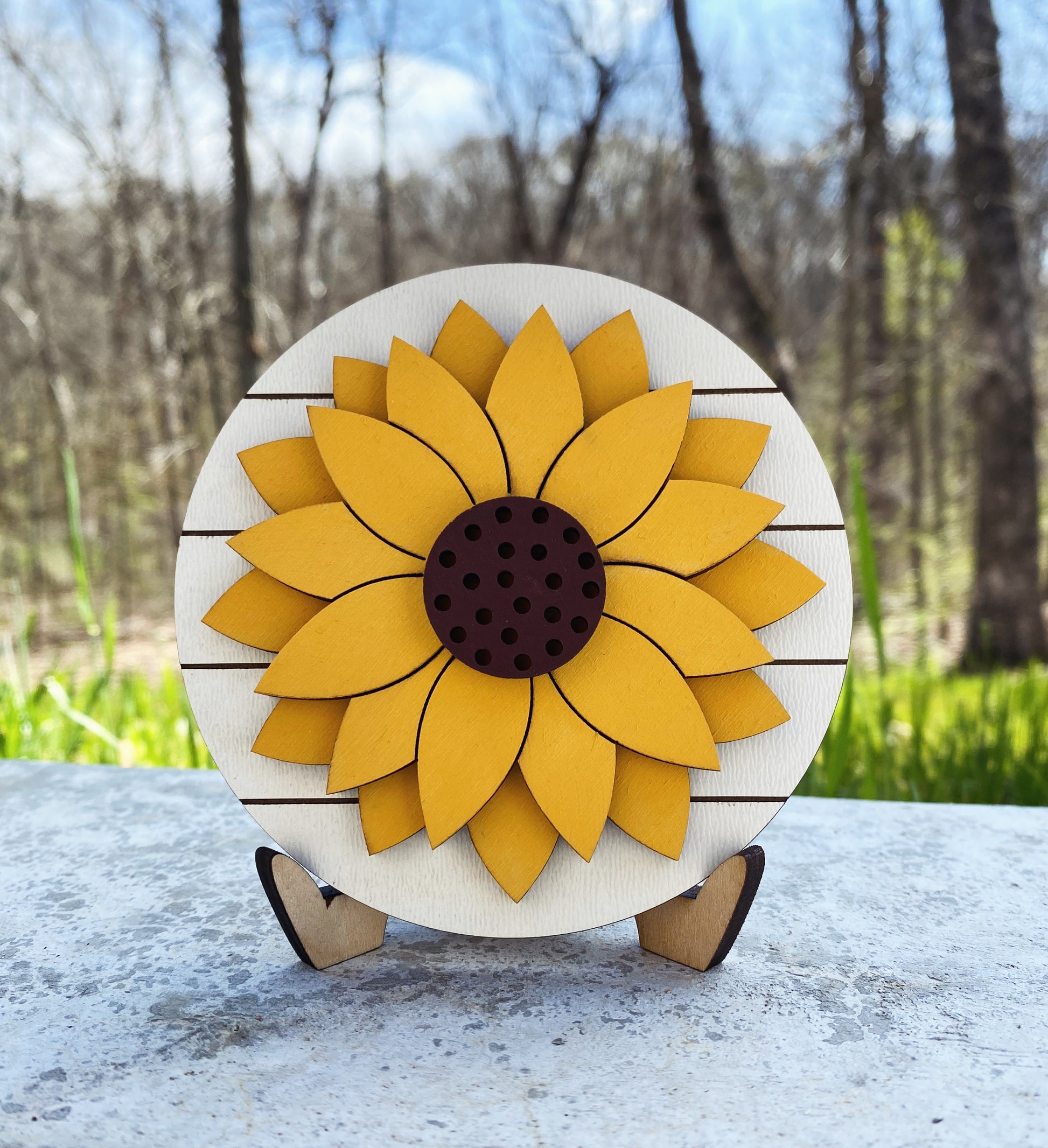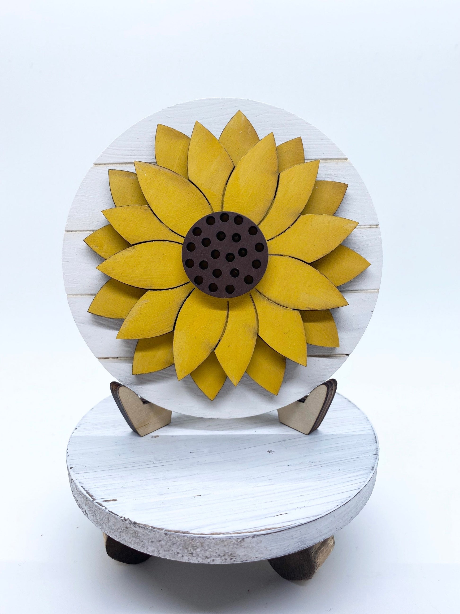 Sunflower Tiered Tray Sign, Mini Shiplap Sunflower Tray Sign, Sunflower Tiered Tray Decor, 4” Round Tiered Tray Sign with Sunflower