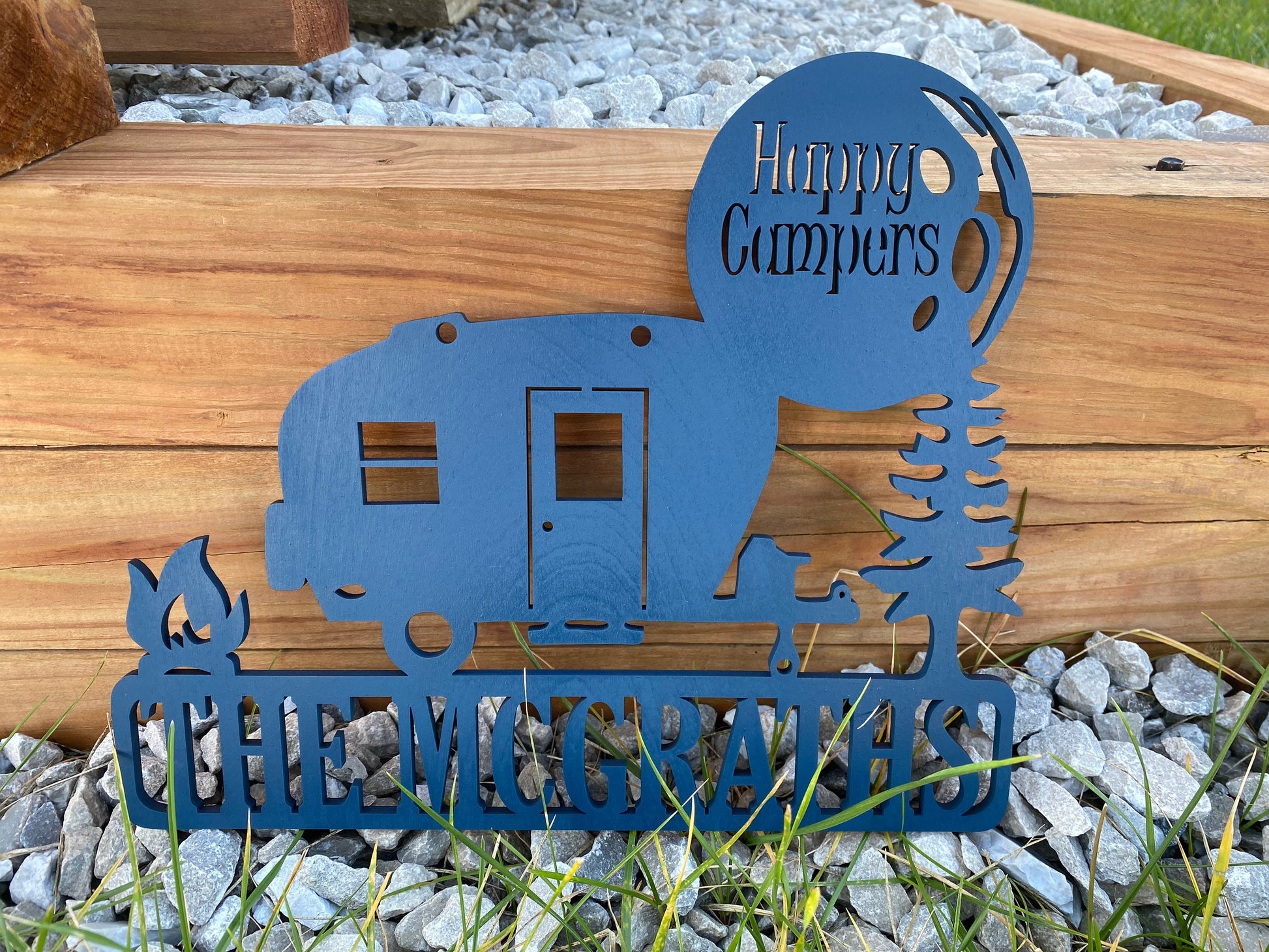 Decorate your RV Camper door with this cheerful Wood Camper Door Hanger. Hand crafted from wood, personalized text and painted , this happy camper sign is the perfect way to express your love for camping life.