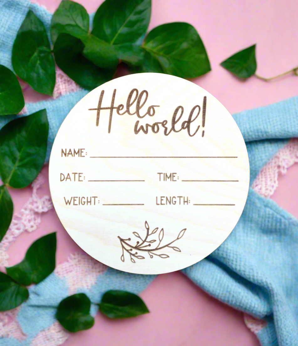 Wood Engraved Baby Announcement, 6” Wood Baby Announcement, New Arrival Baby Announcement, Baby Milestone, Hello World Baby Stats