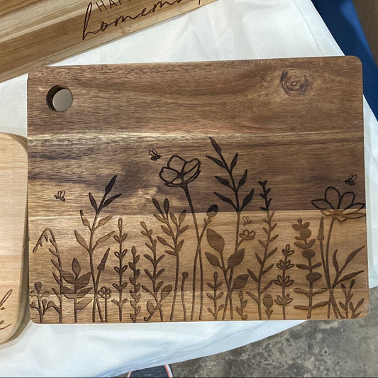Wildflower and Bees - Solid Walnut Wood Cutting Board