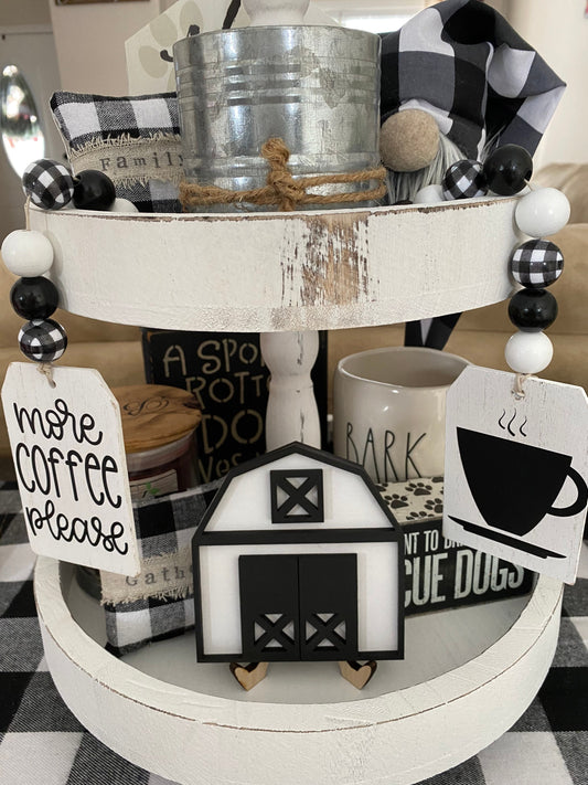 Buffalo Plaid Coffee Bar Garland, Black and White Tiered Tray Decor, Coffee Garland, Black and White Buffalo Plaid Tiered Tray Garland