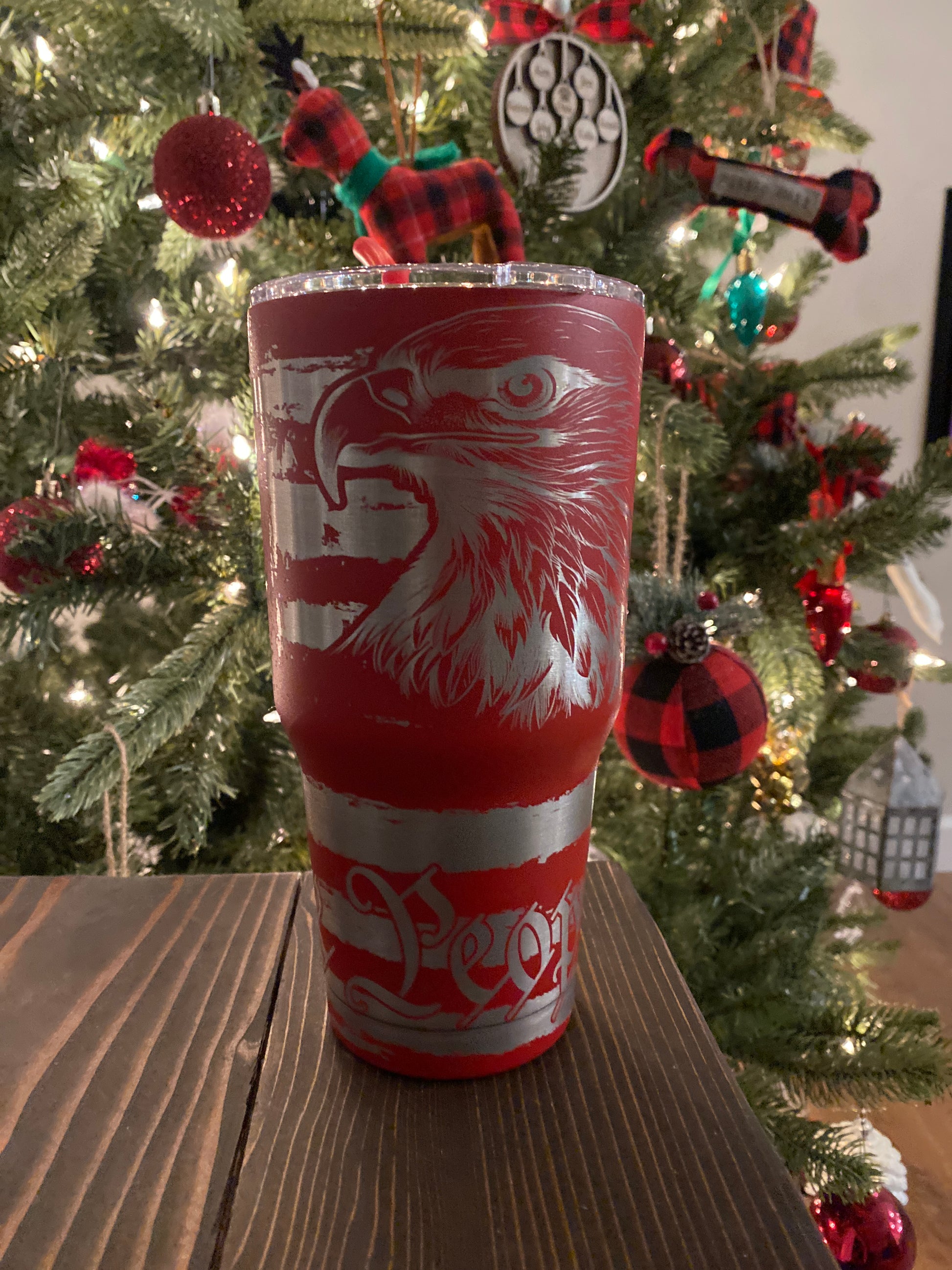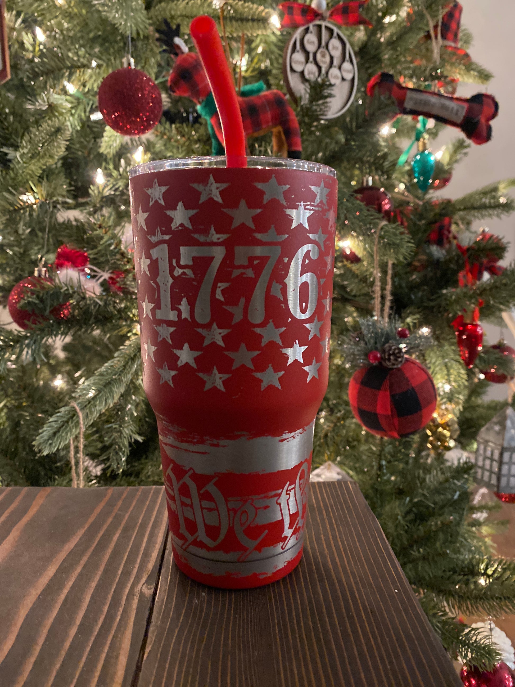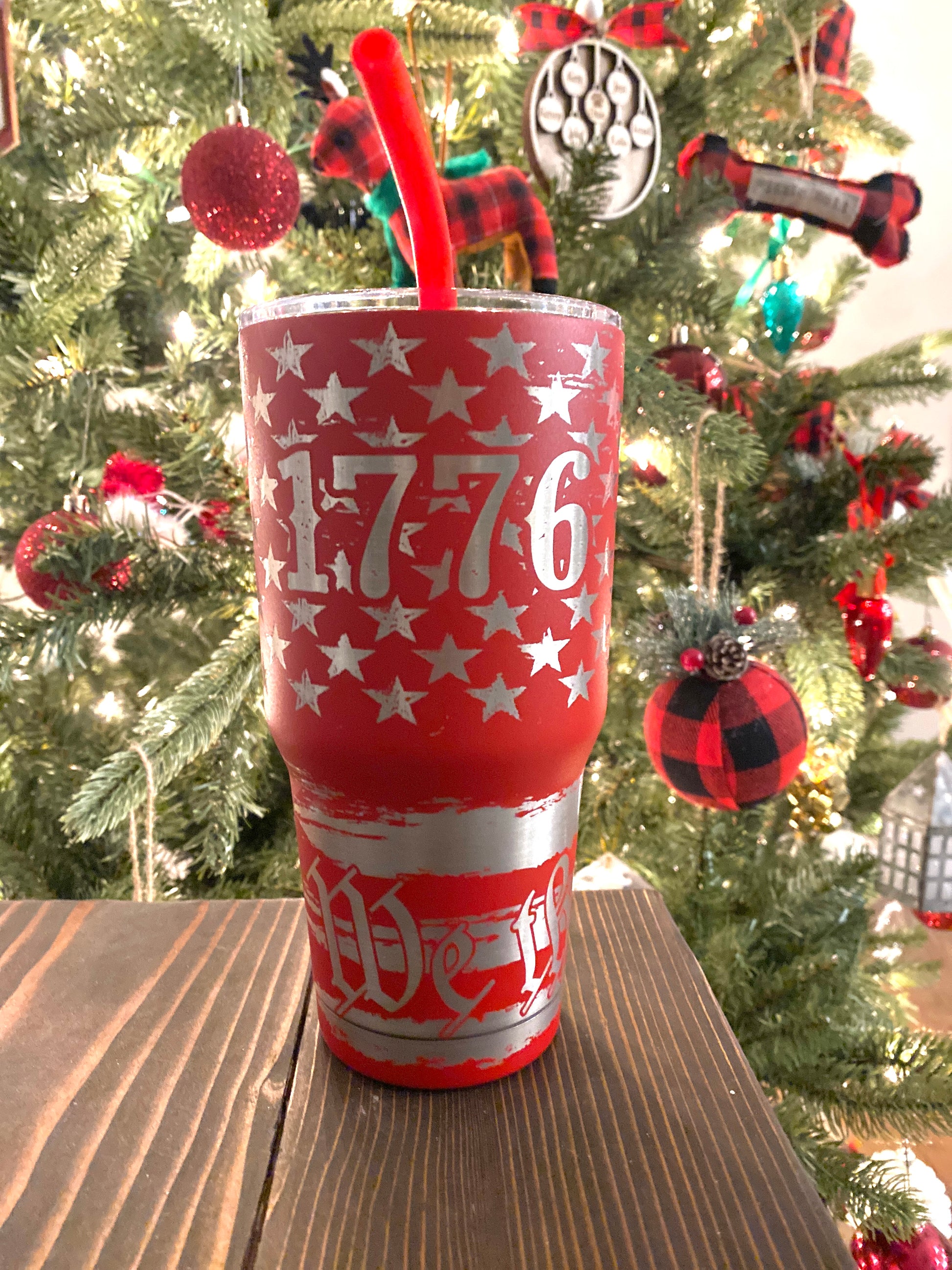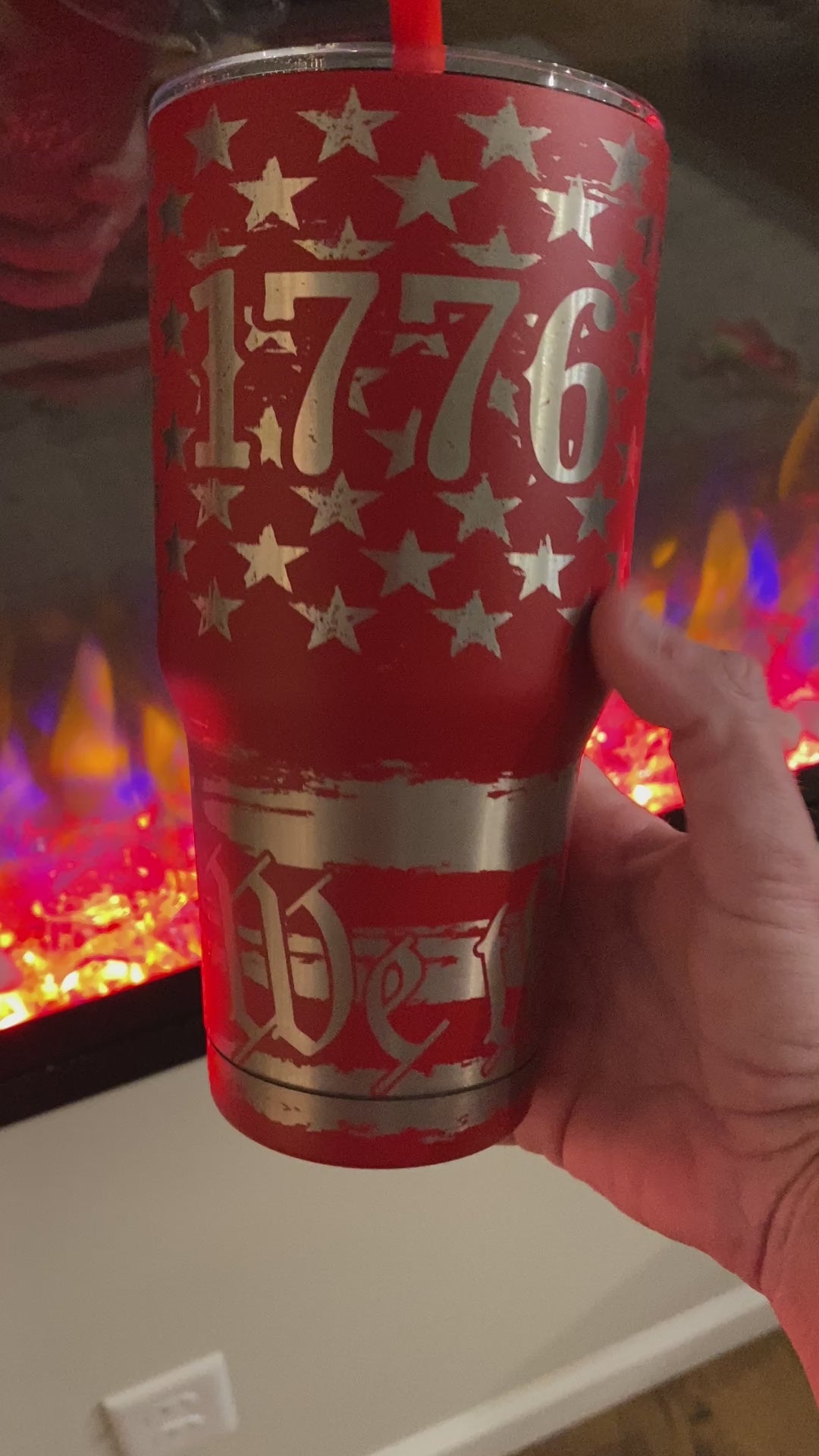 Sip in style with this Patriotic 1776 We The People 30oz Red Tumbler. Featuring a powder coated matte finish and a laser engraved ‘We The People’ design, this tumbler offers both design and practicality. It also boasts a straw and sliding splash proof lid, and is guaranteed to keep drinks cold for 24+ hours and warm for 8 hours.