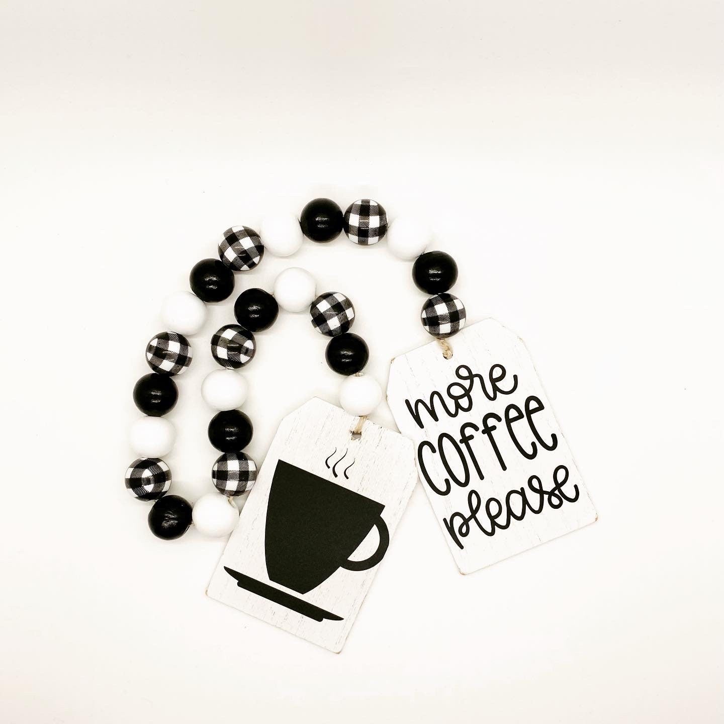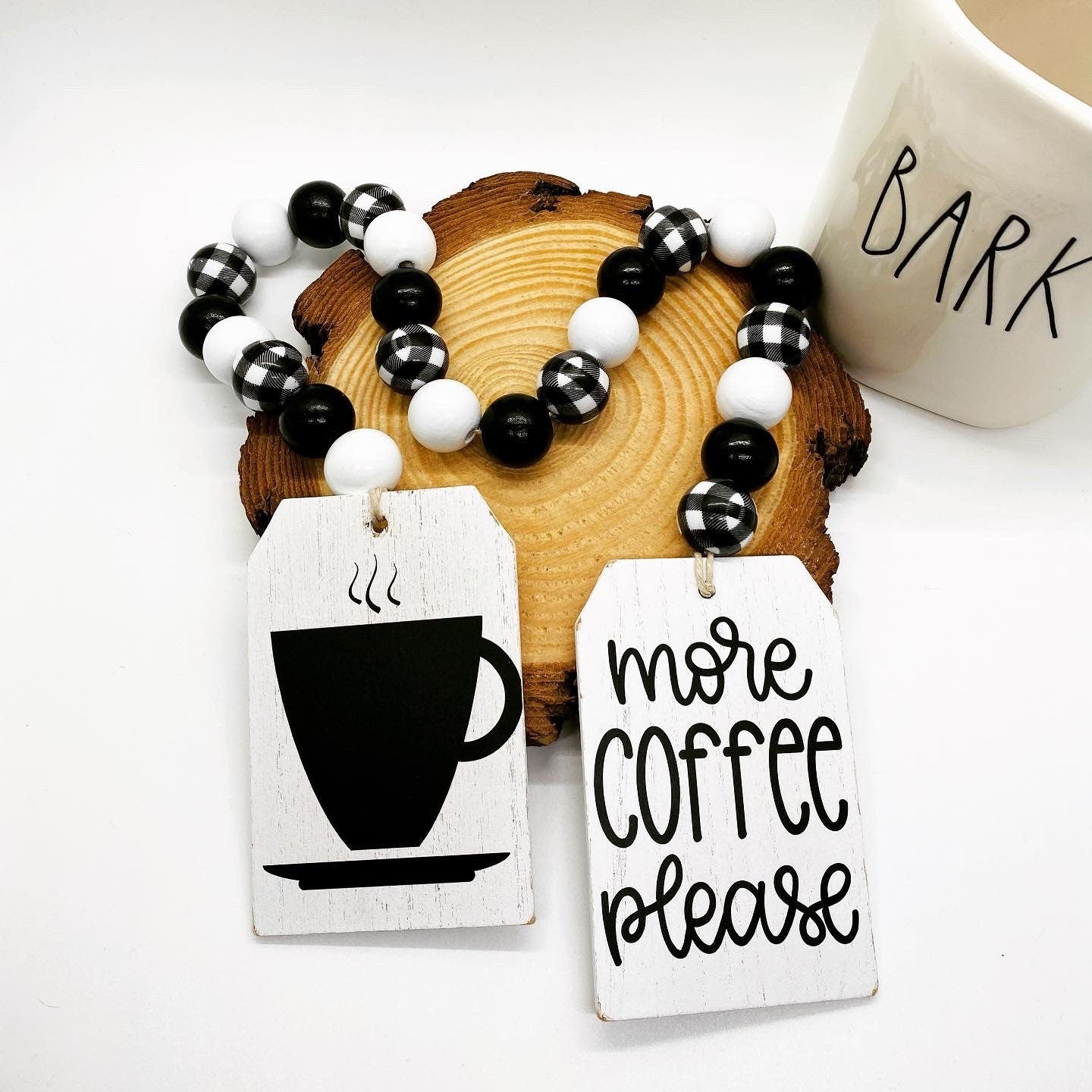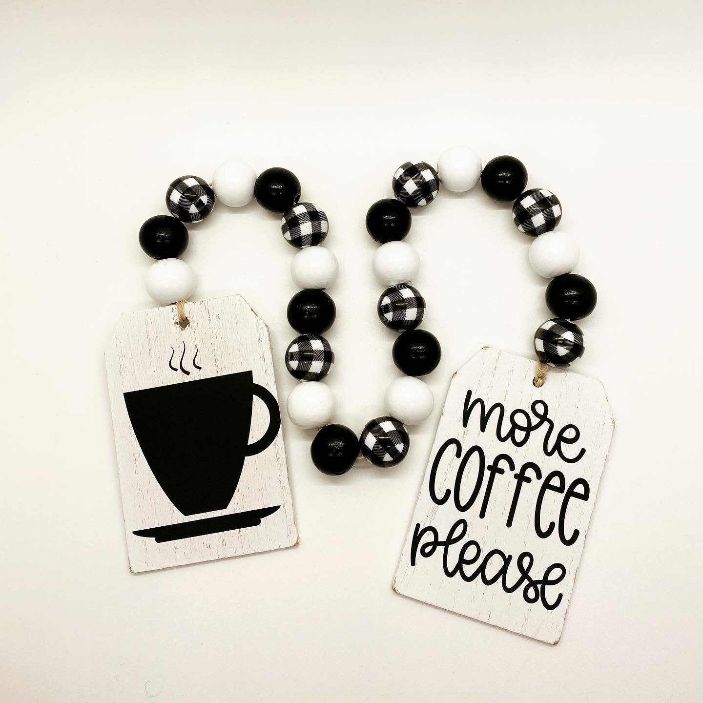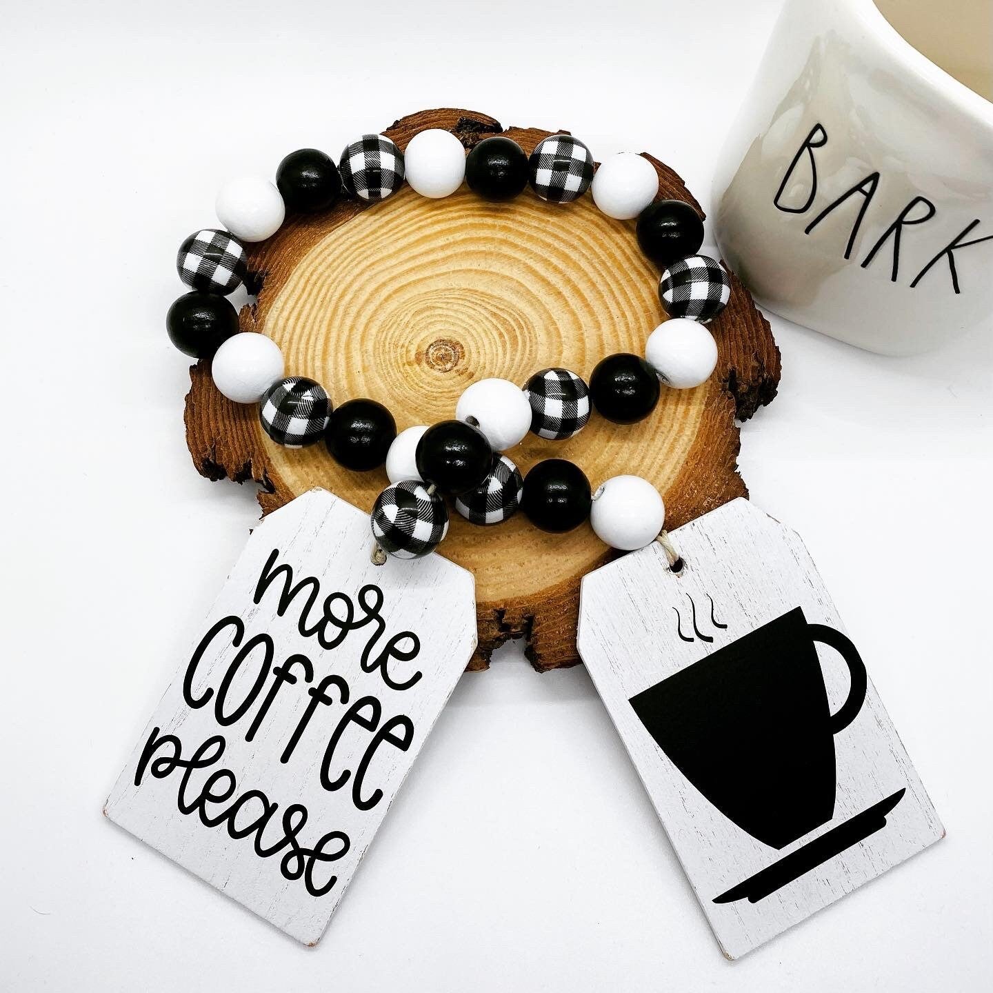 This adorable black and white buffalo plaid coffee bar tiered tray Garland is the perfect piece for your tiered tray or coffee bar. Measures at approximately 24.5” from end to end. The wood tags have a washed reclaimed look. Great addition to your farmhouse style.
