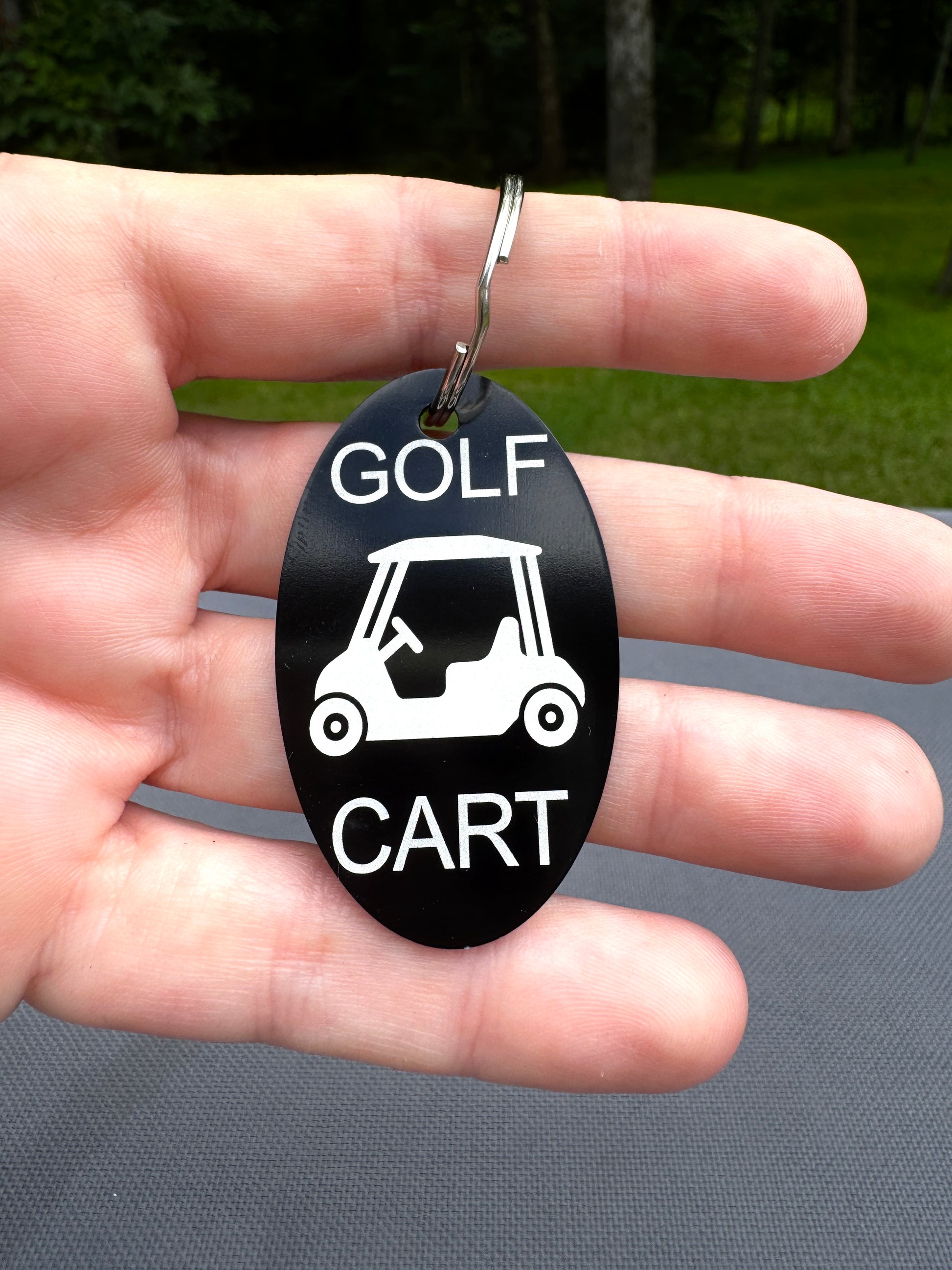 Laser Engraved Golf Cart Keychain – Durable Black Aluminum Tag