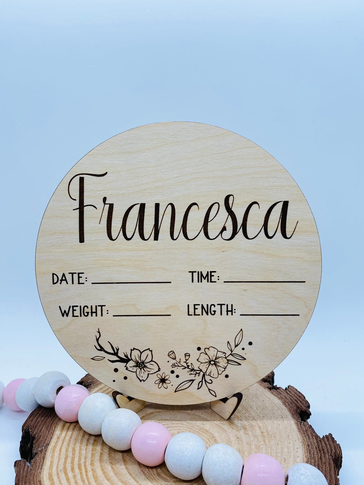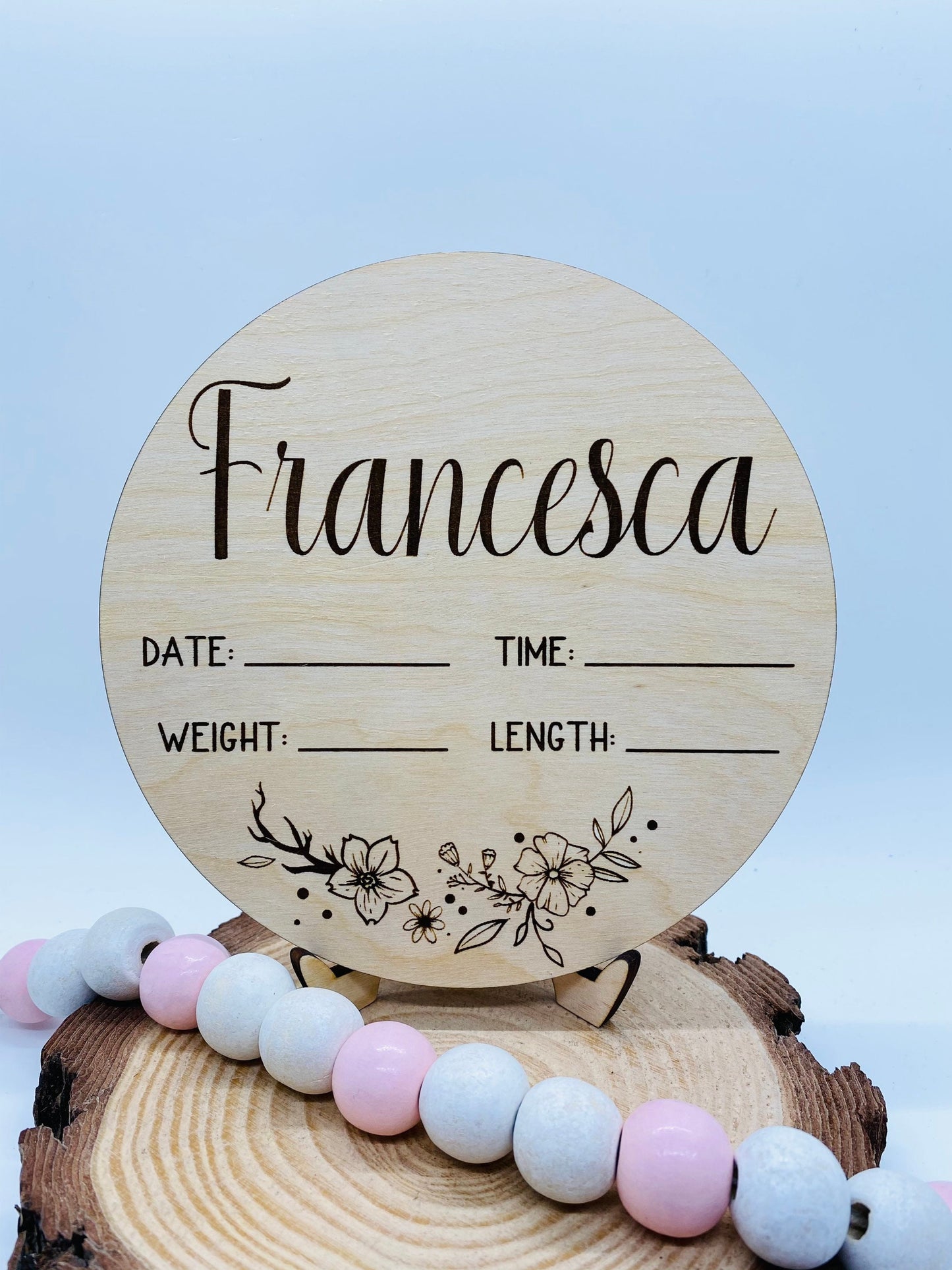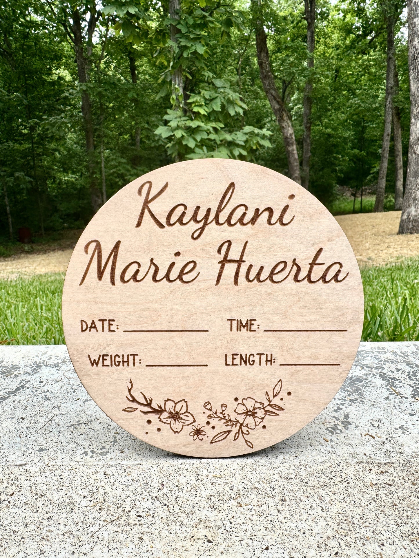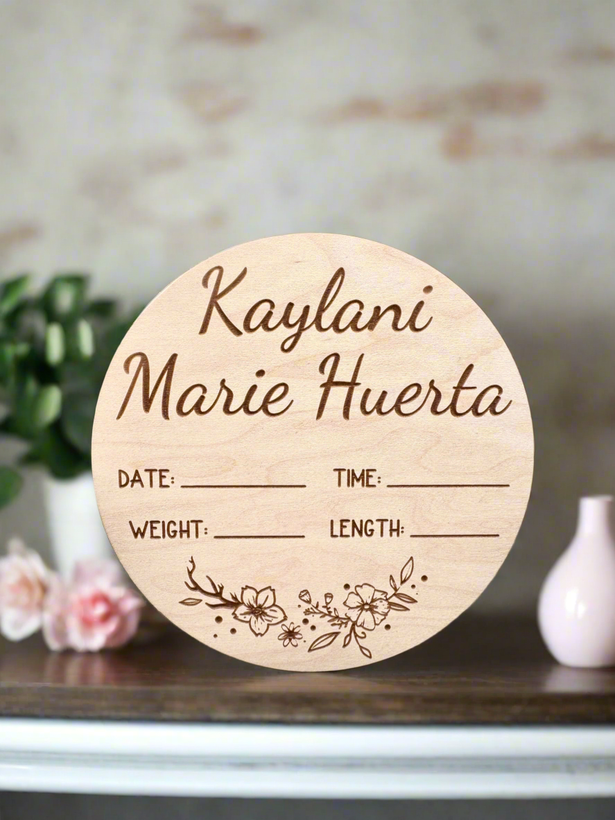 These adorable birth announcements are ready to add stats from your new arrival! Each baby photo prop is 6" in diameter by 1/4” thick. Just add your baby stats and you are ready for pictures. This item is designed to be leaned; no hardware attached. Enter name to be engraved in the personalization box before checkout. There could be slight variations or knots in wood. Each piece will look a little different as no two pieces of wood are exactly the same. These are handmade with our laser right here in Missouri!