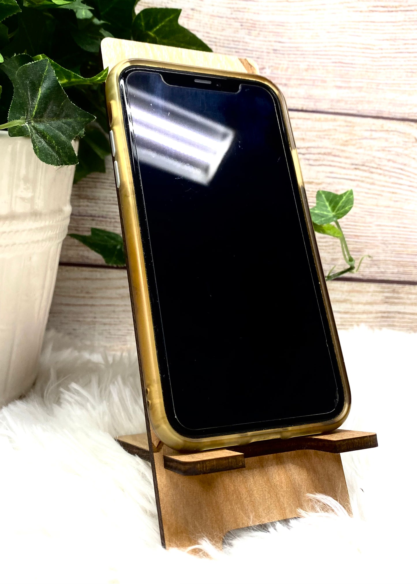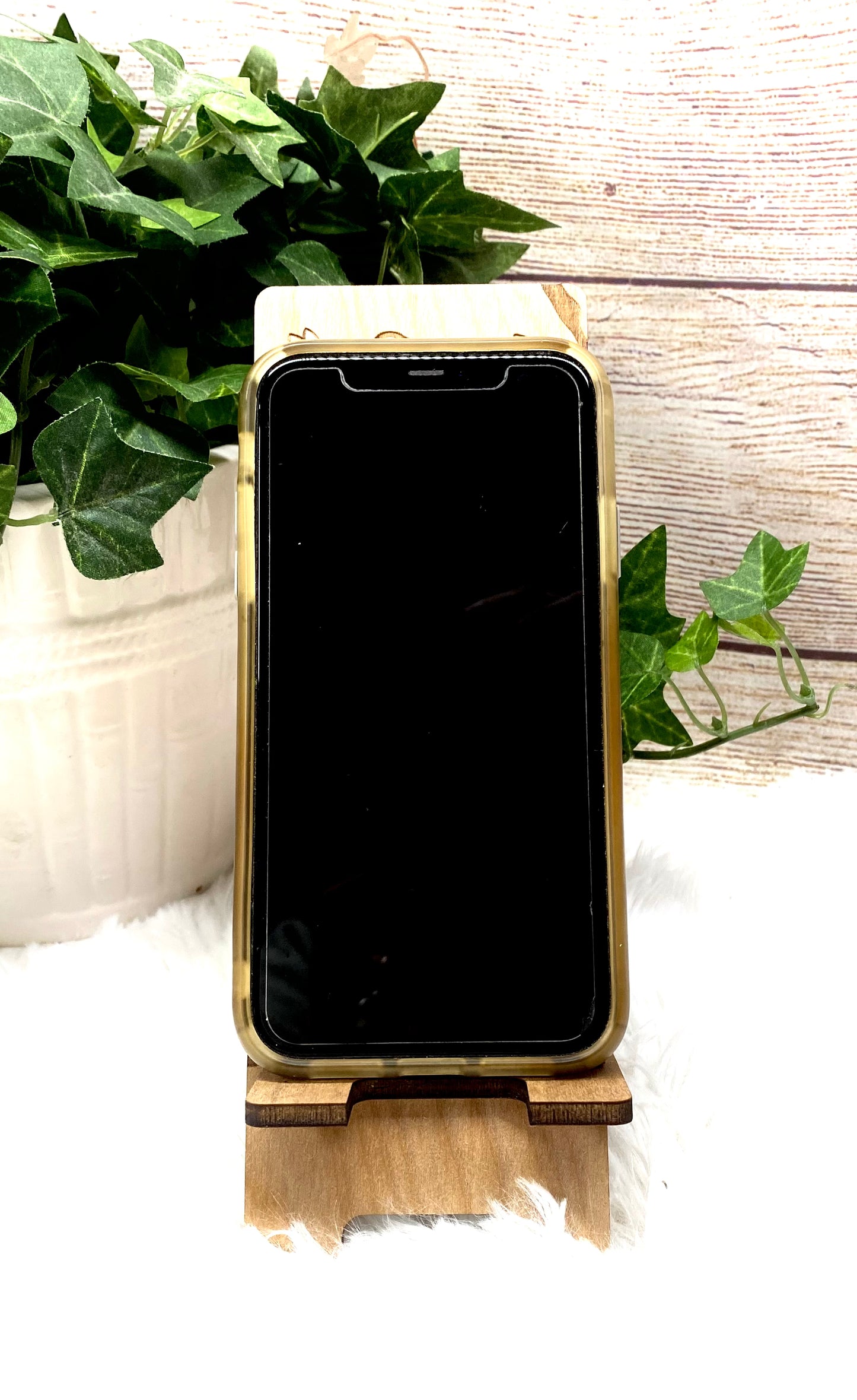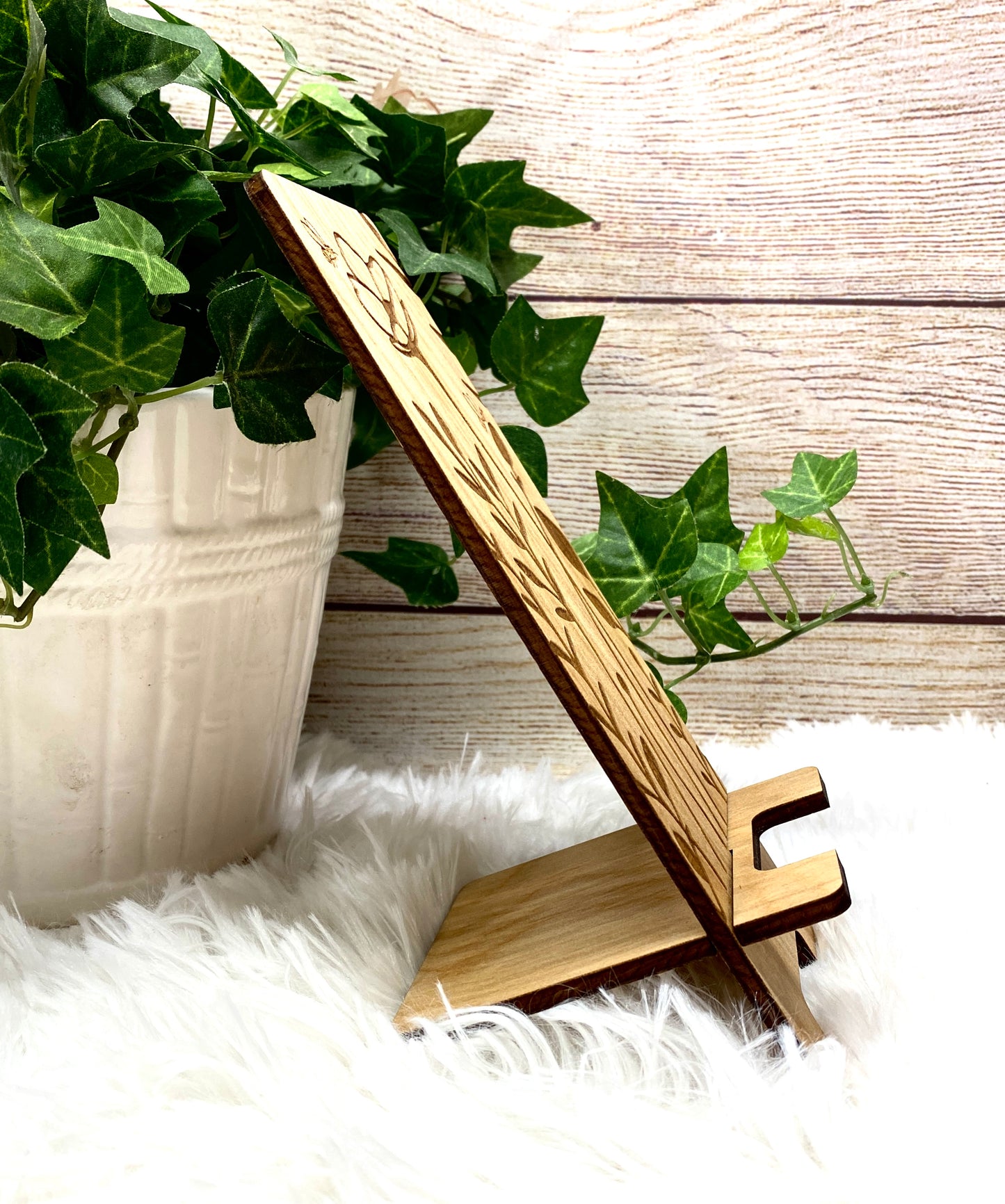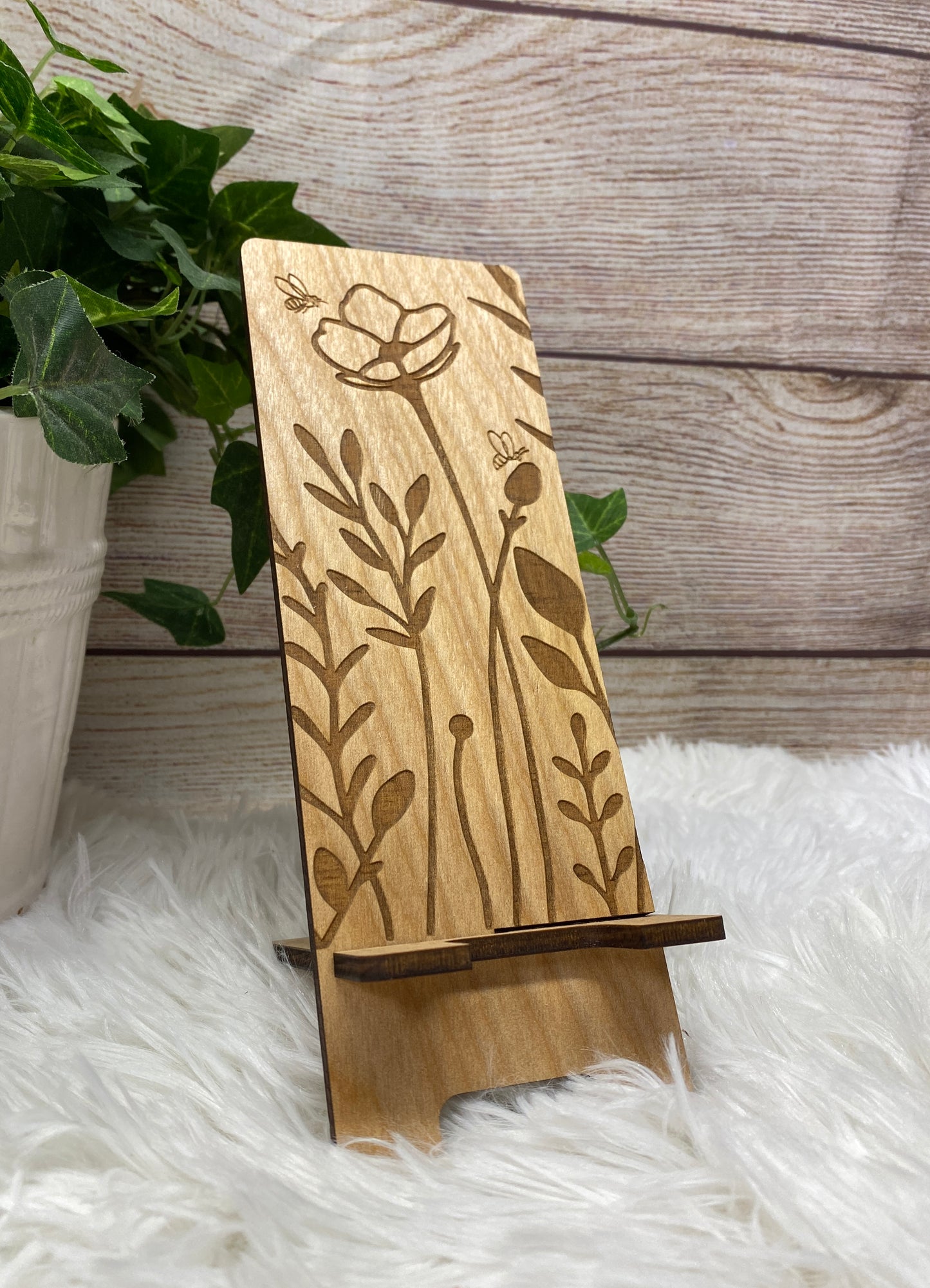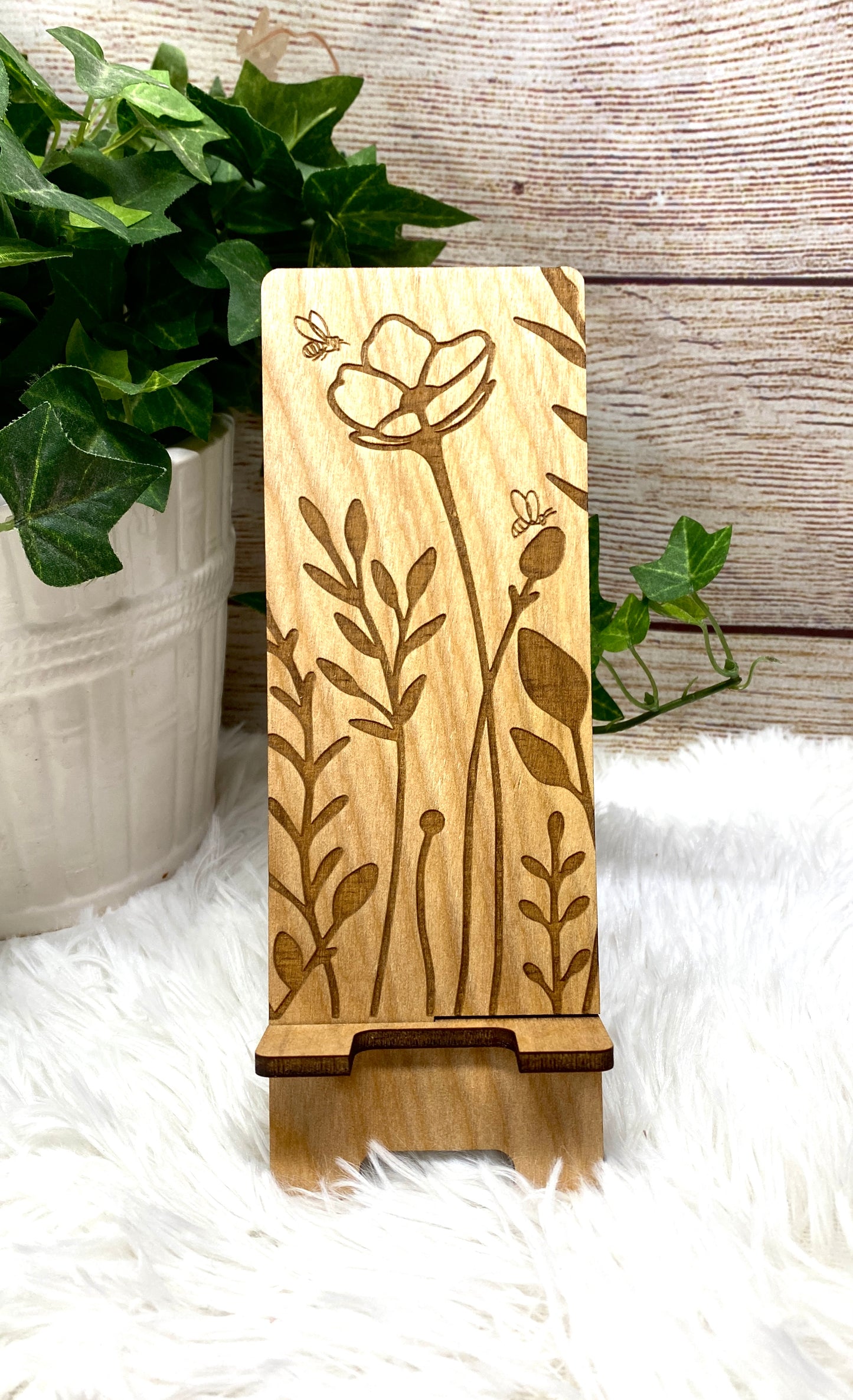 Wildflower and Bees Wood Phone Stand