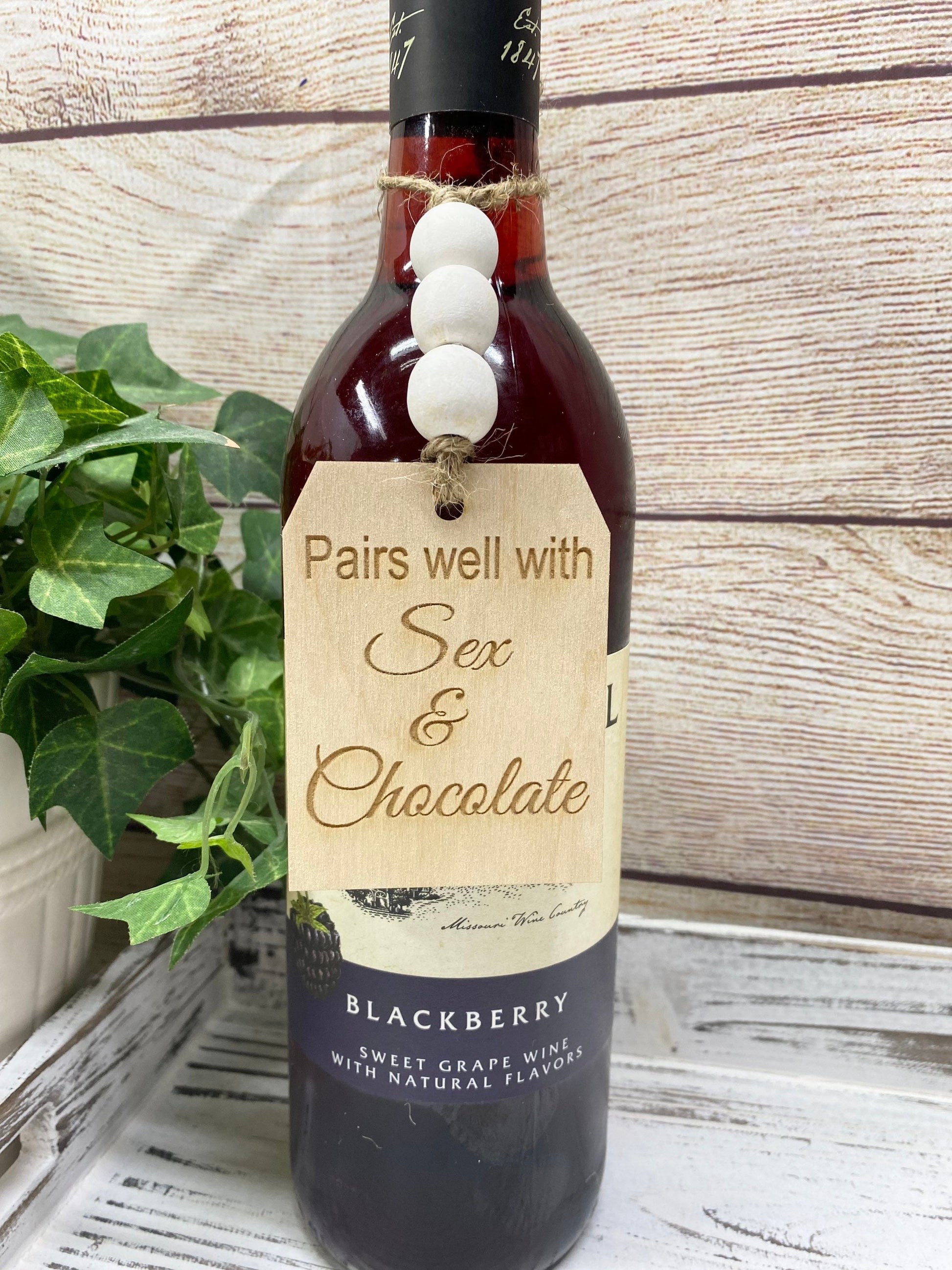 "Pairs Well with Sex and Chocolate" Wine Bottle Tags