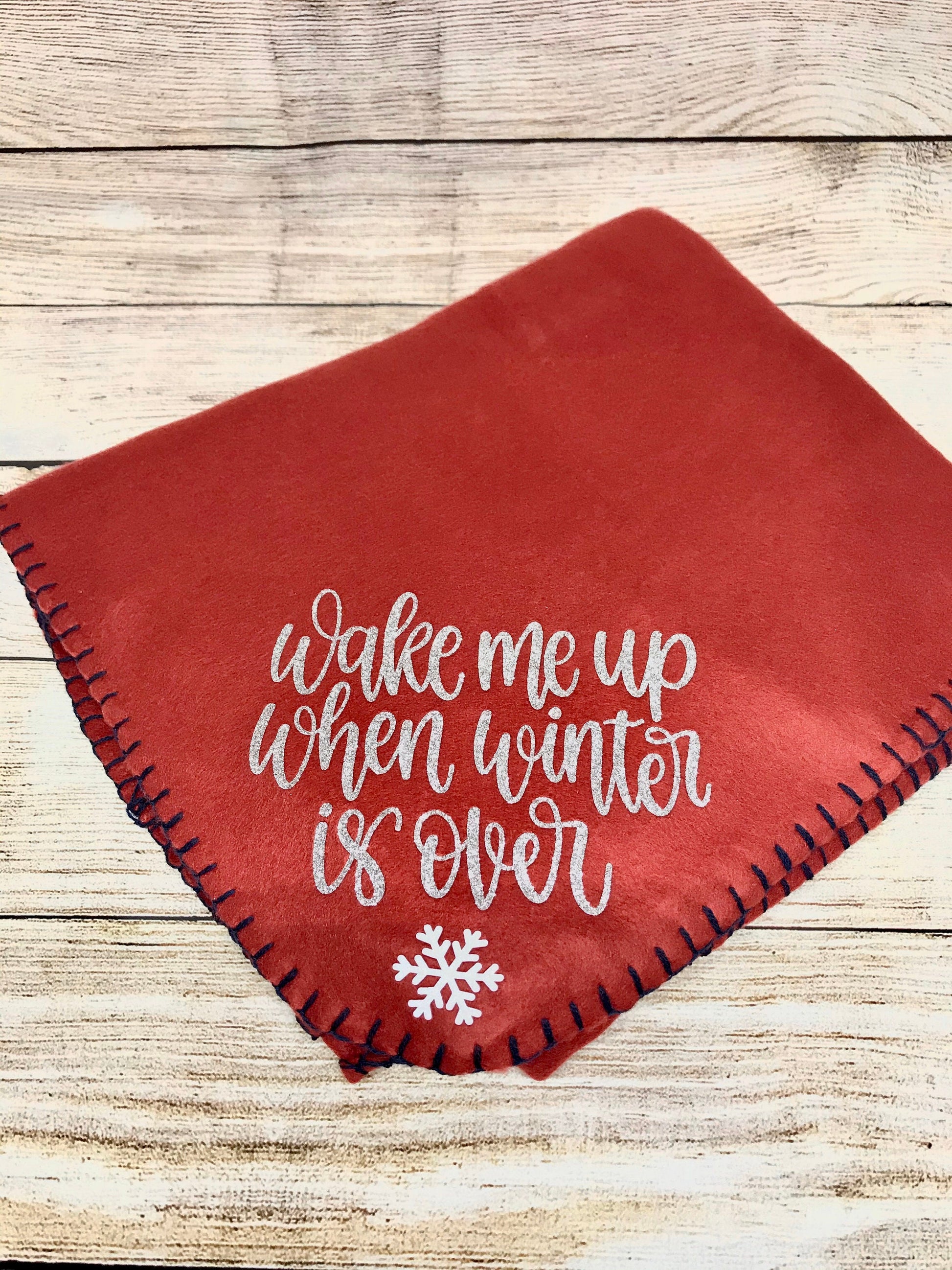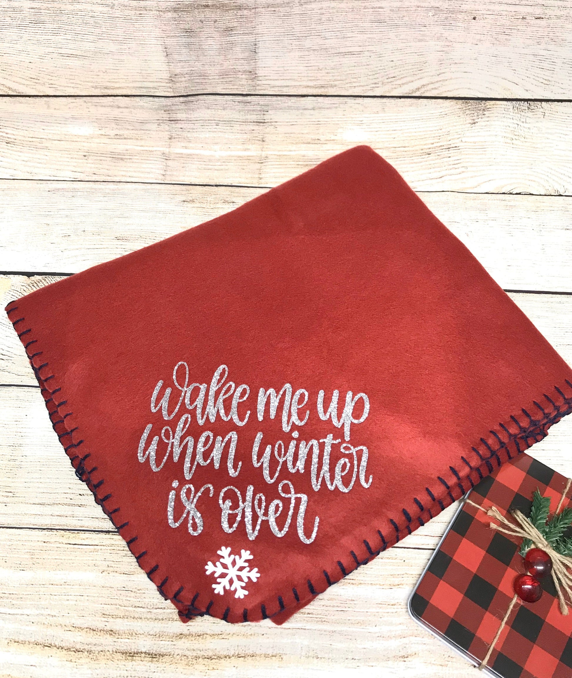 CLOSEOUT - Winter Fleece Blanket, Wake Me Up When Winter is Over, Warm Fleece Blanket, Glitter Blanket, Christmas Blanket