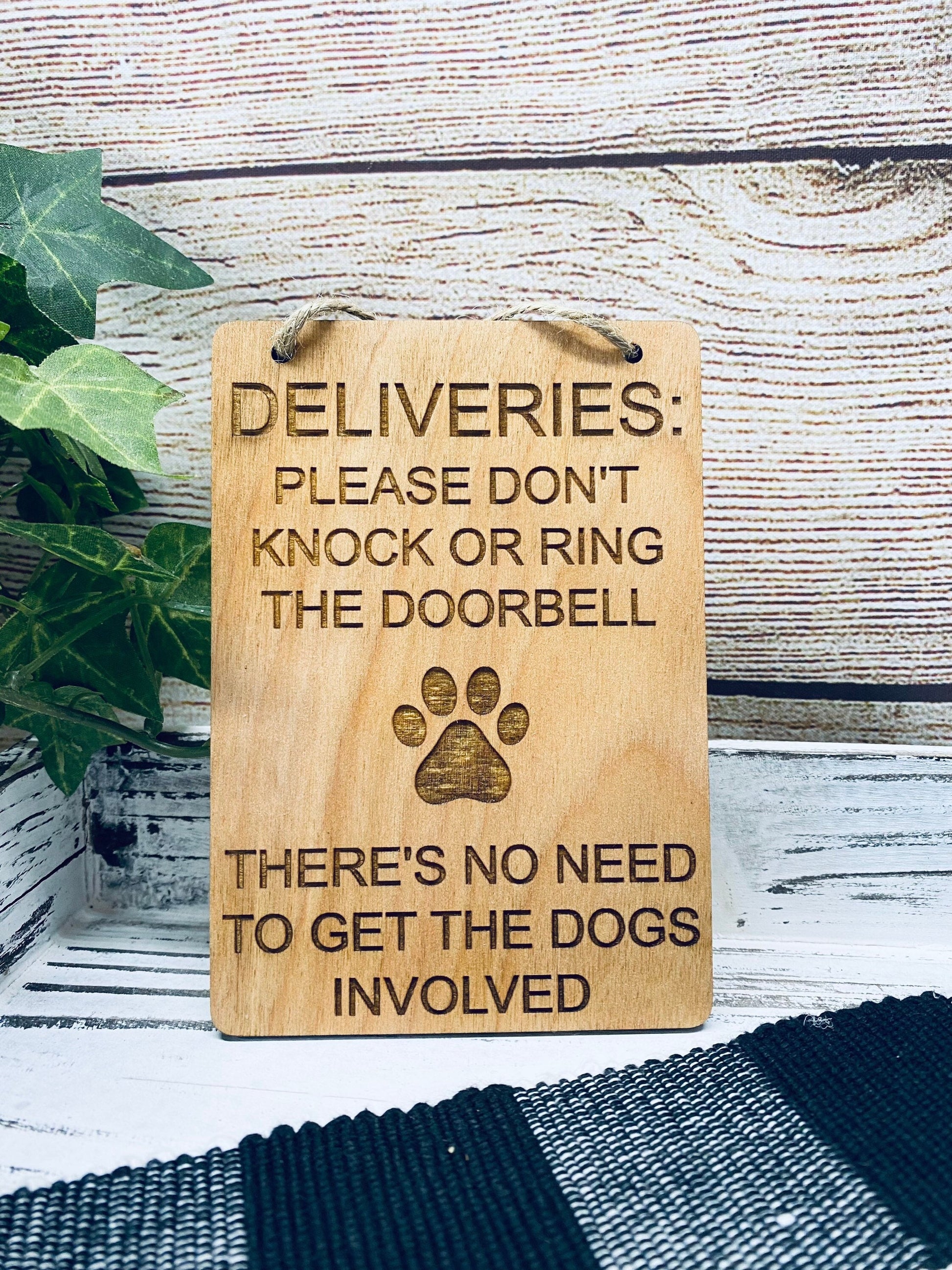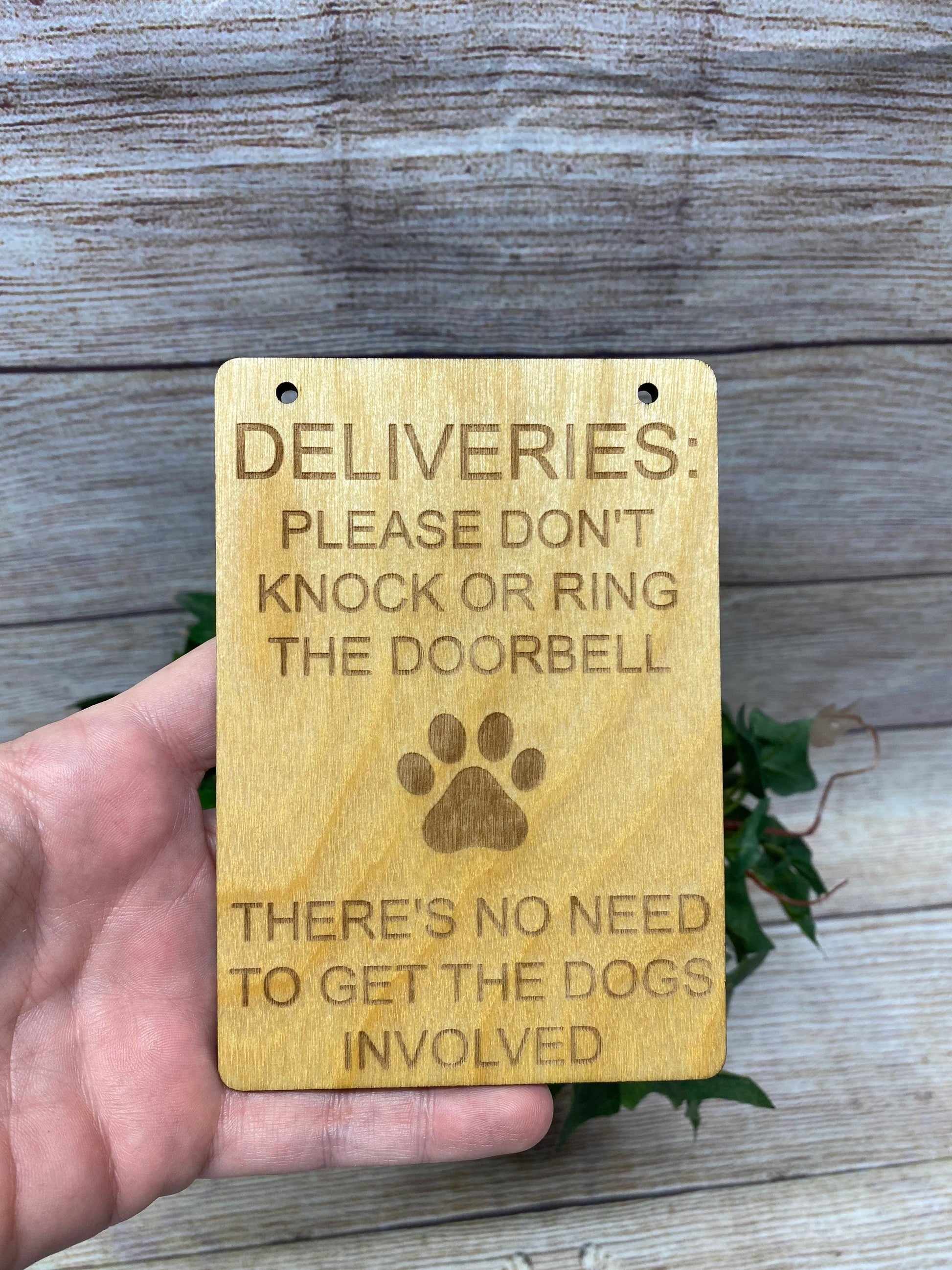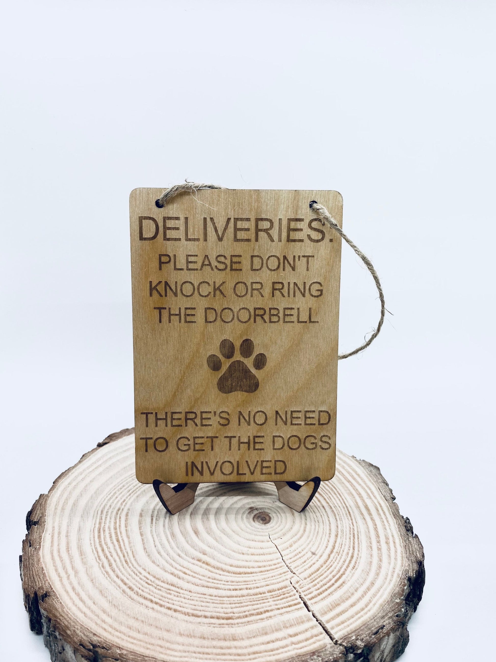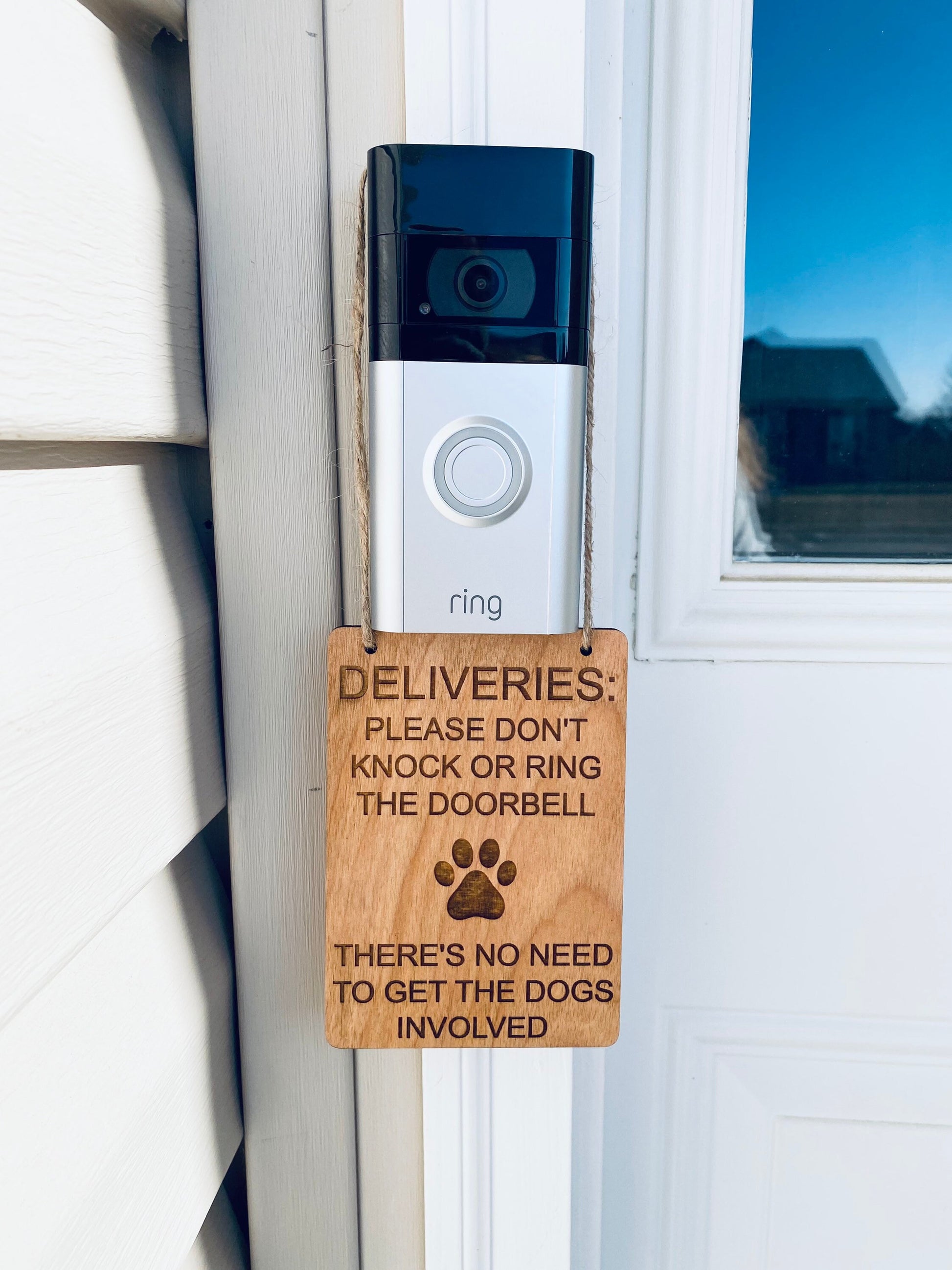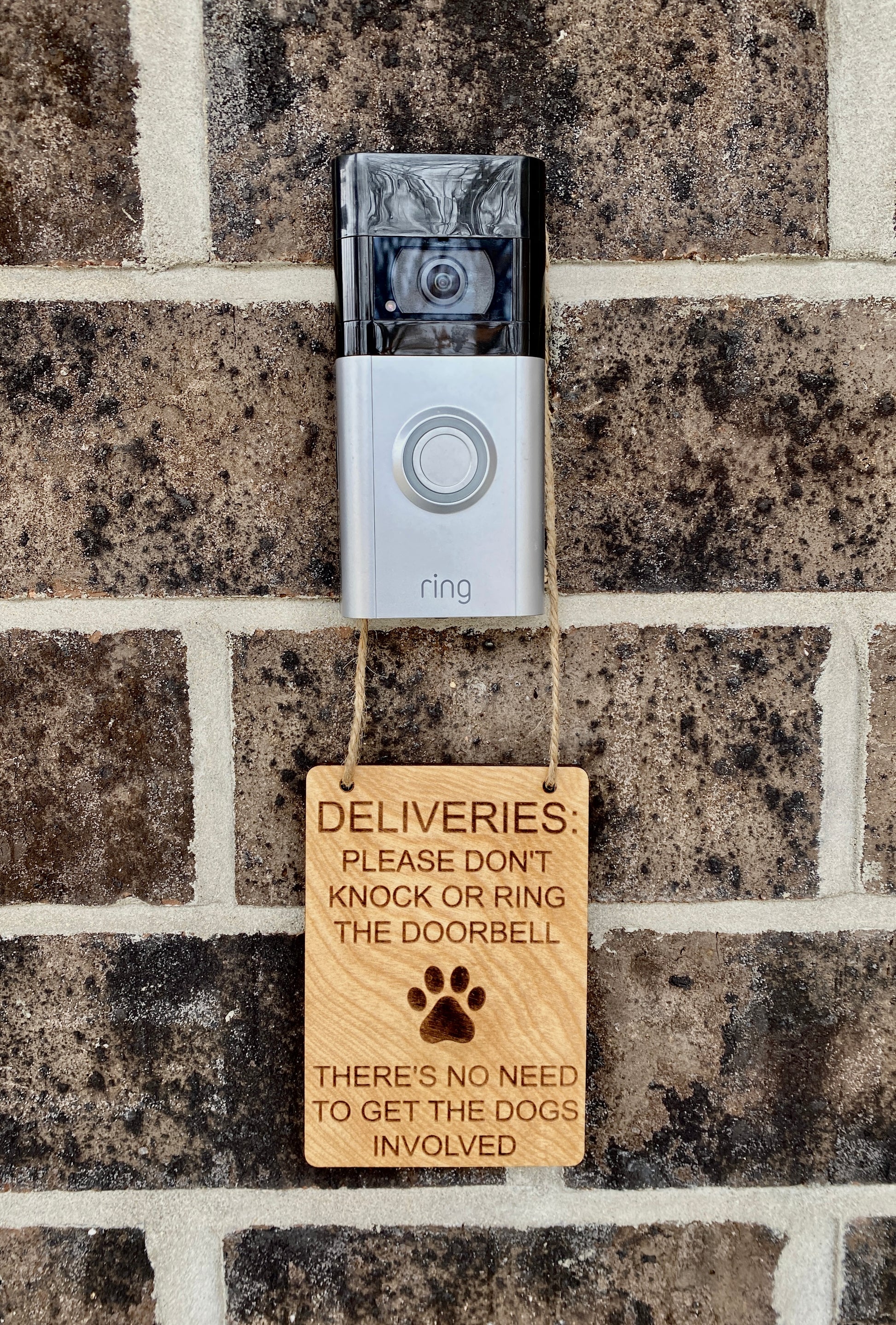 - Our delivery sign is designed to hang next to your doorbell or over your Ring Doorbell to announce to delivery drivers not to ring the doorbell for deliveries.