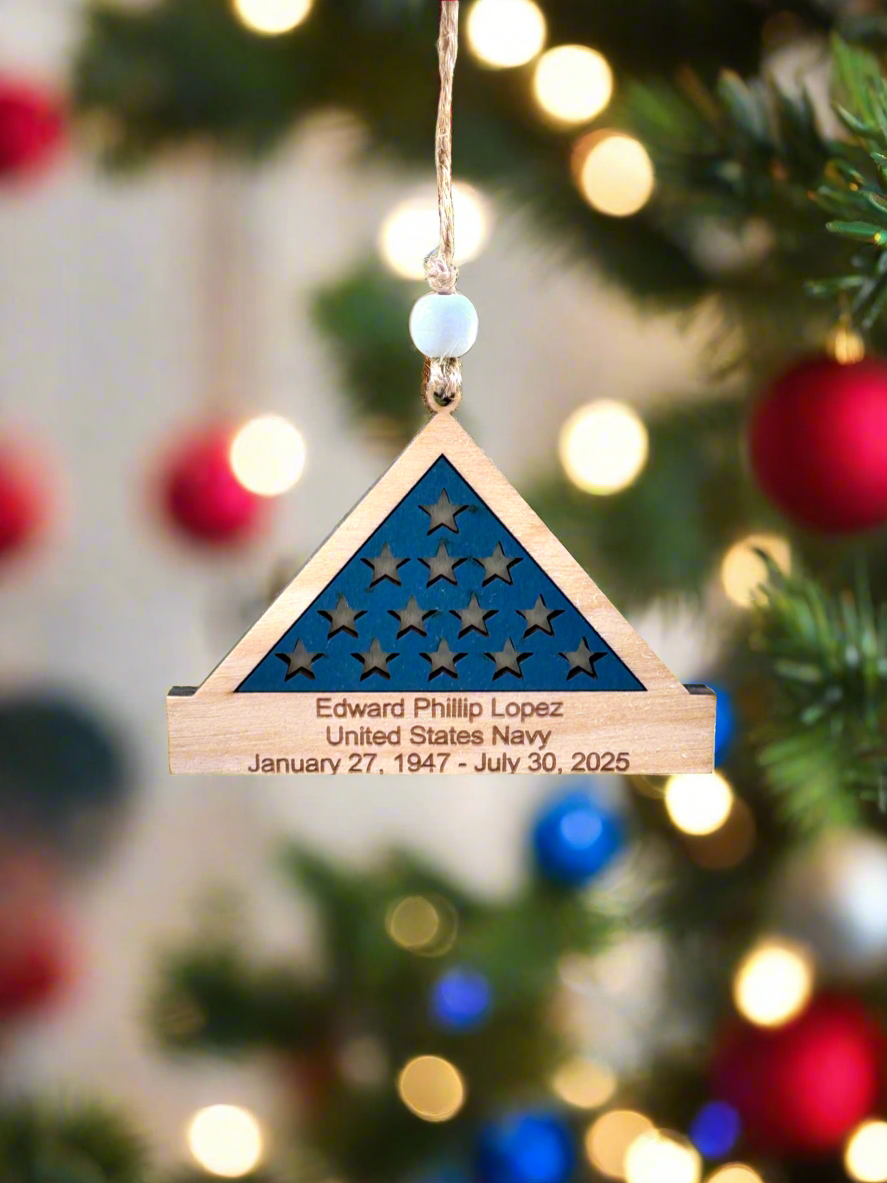 Personalized Military Folded Flag Veteran Memorial Ornament