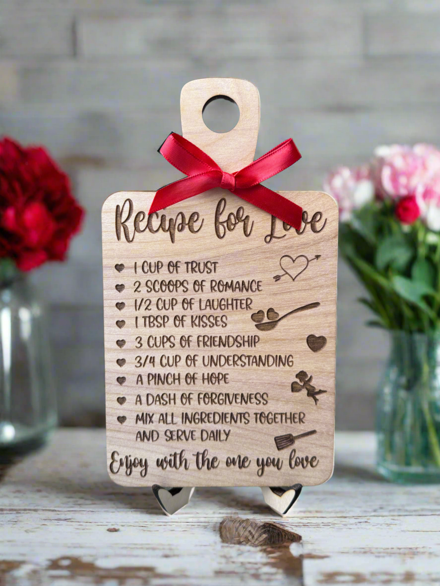 Recipe for Love Valentine’s Sign – Laser Engraved Wooden Decor
